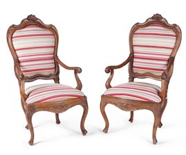 Coppia di poltrone in legno intagliato. XVIII secolo