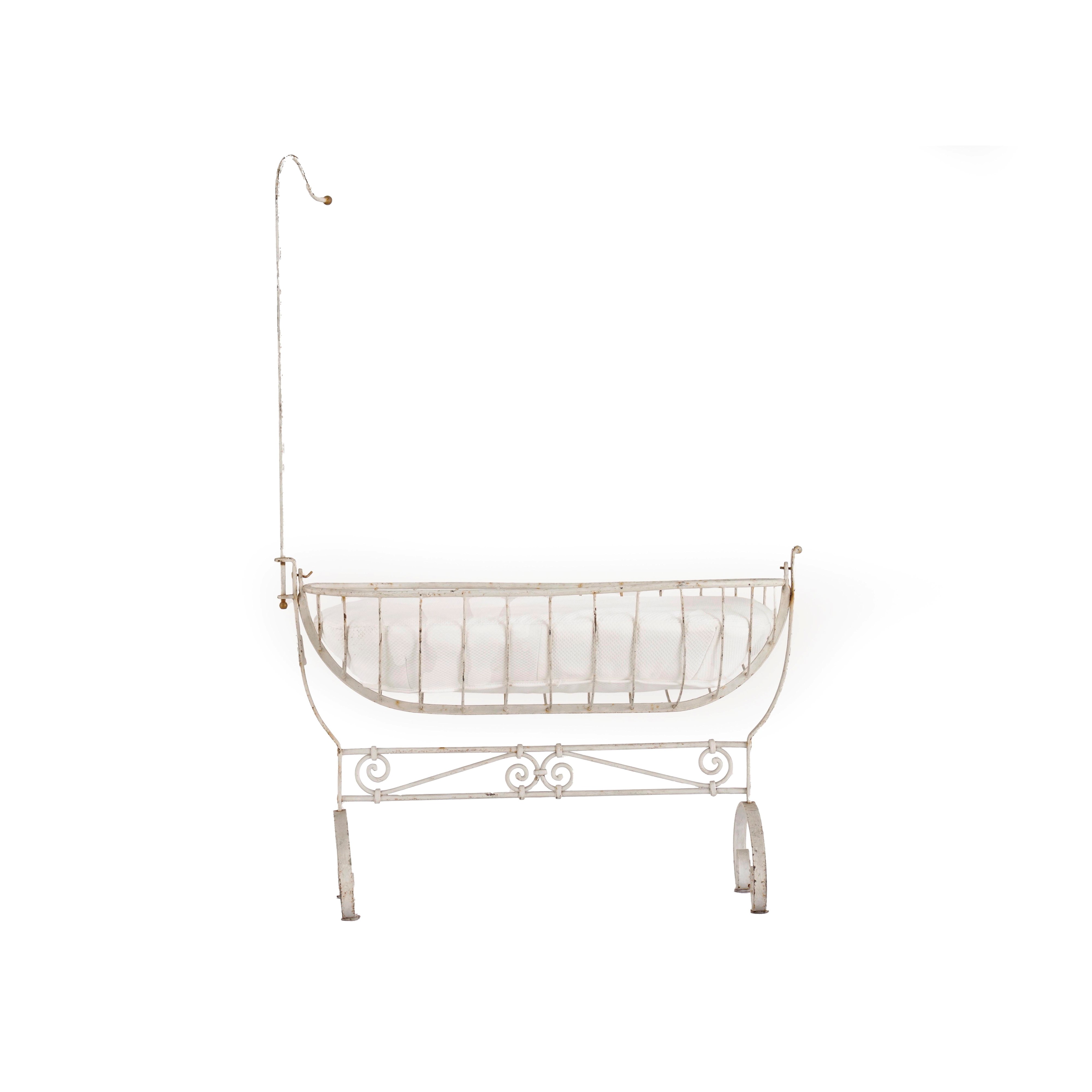 Culla in ferro battuto dipinto. Fine XIX-inizi XX secolo