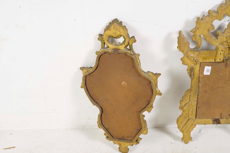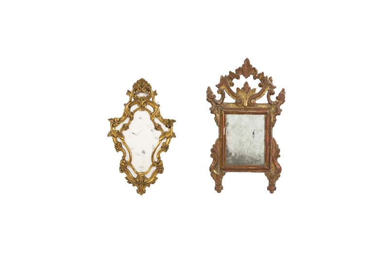 Gruppo di specchierine diverse in legno intagliato e dorato. XIX-XX secolo