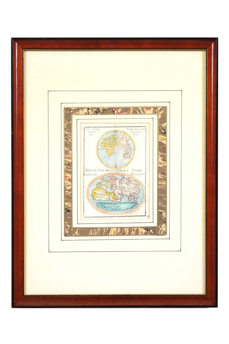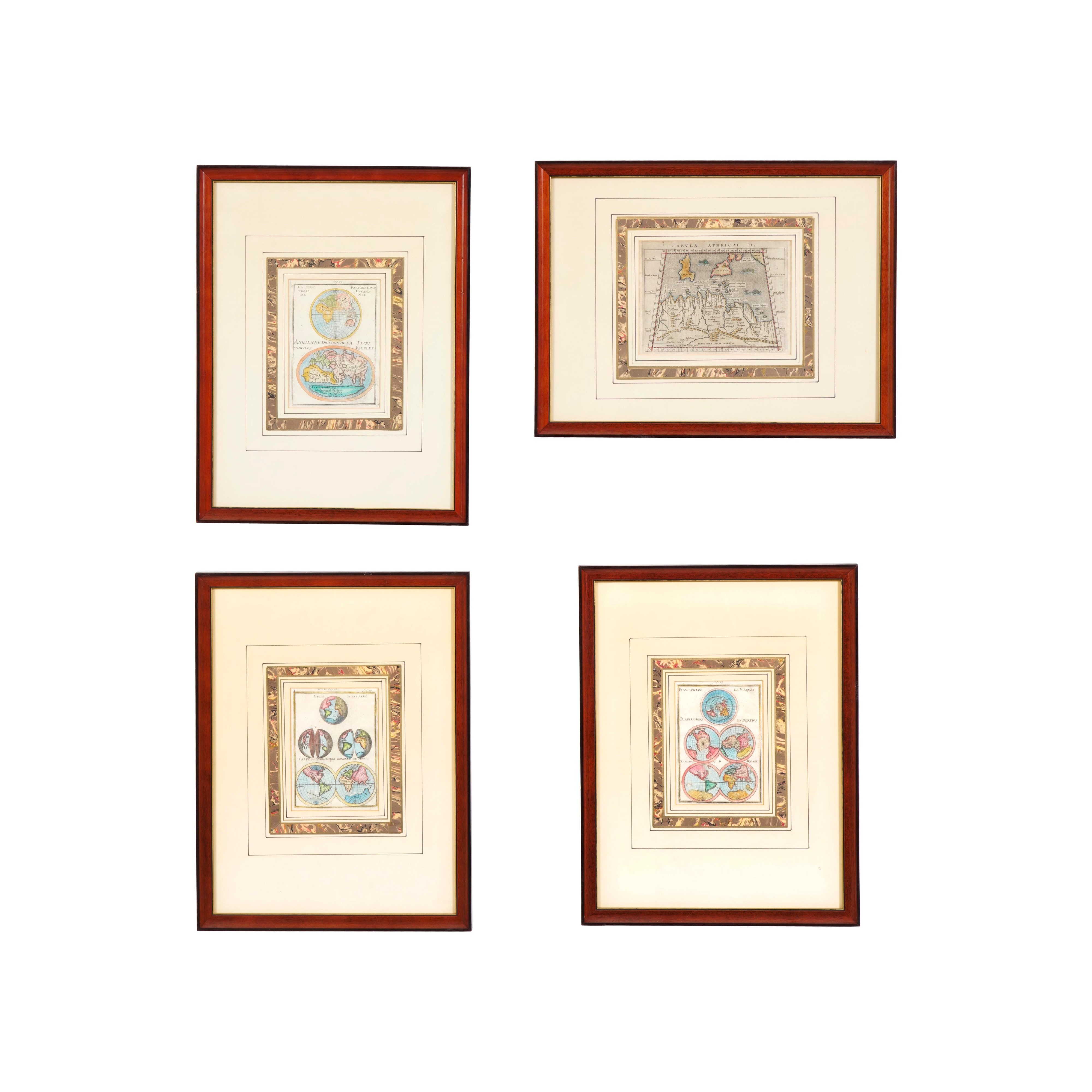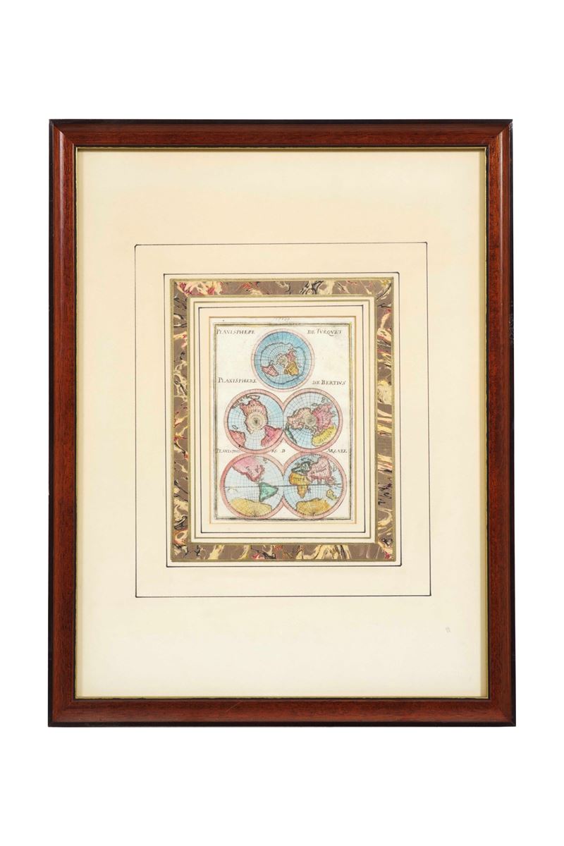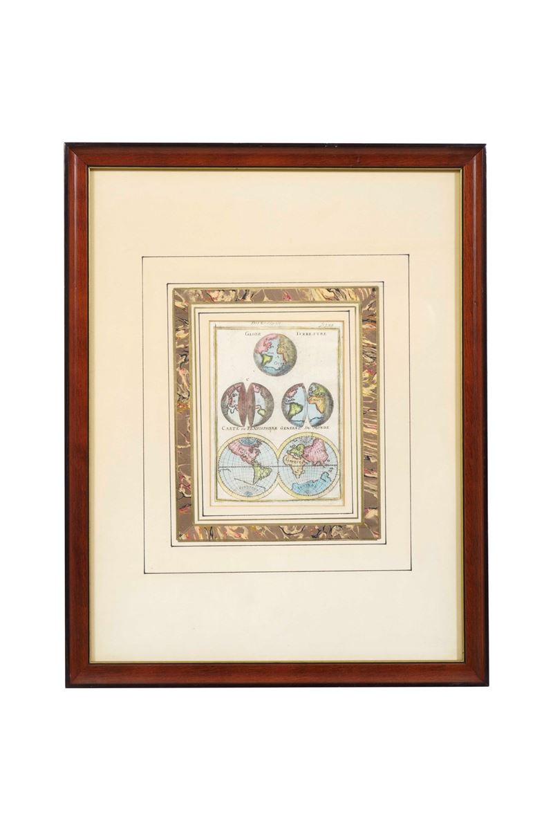 Tre raffiguranti l'orbe terraqueo e una una porzione dell'Africa. Entro cornici moderne