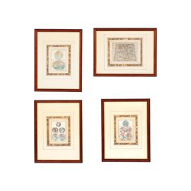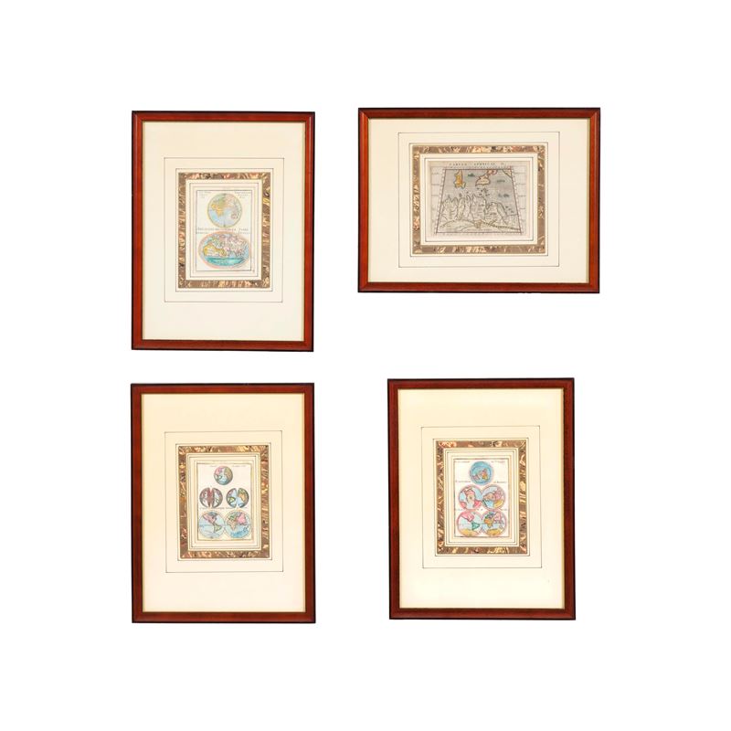 Lotto di quattro arte geografiche colorate ad acquarello