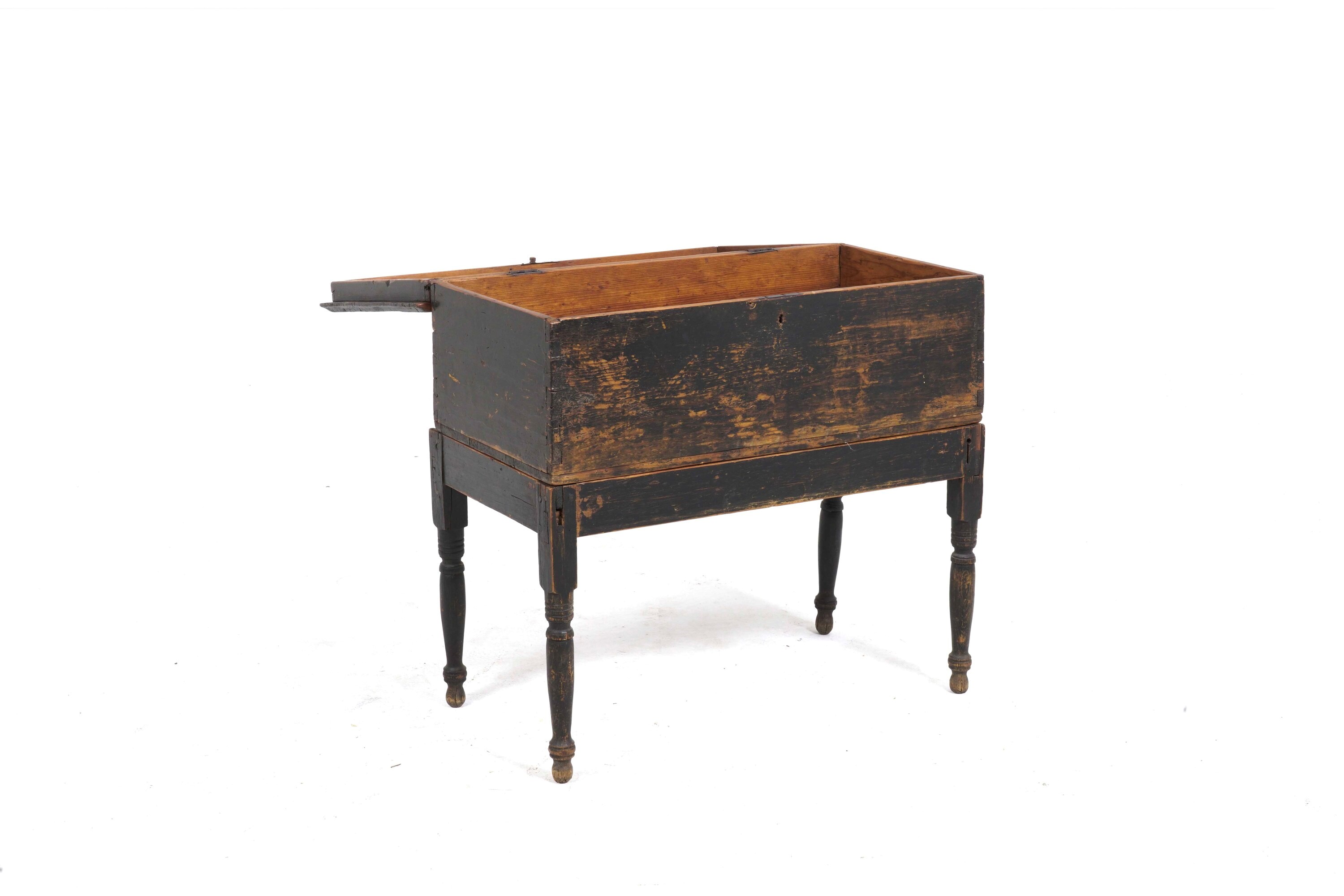 Piccolo baule in legno con base con gambe tornite