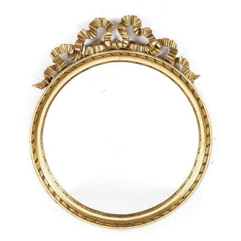 Specchiera tonda in legno intagliato e dorato. XX secolo