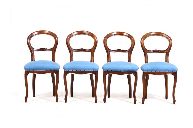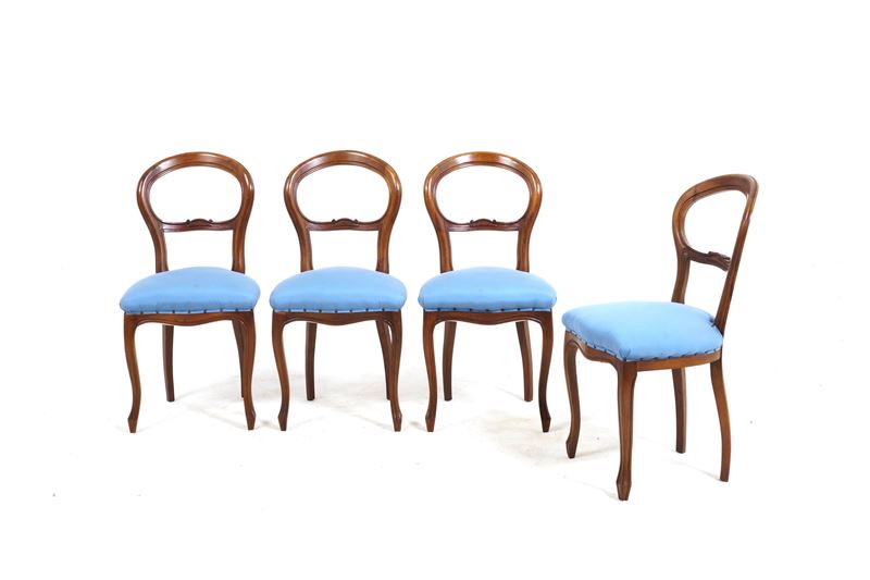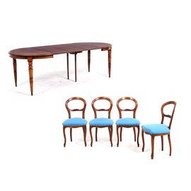 Tavolo allungabile e quattro sedie in legno. XIX-XX secolo