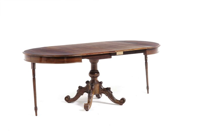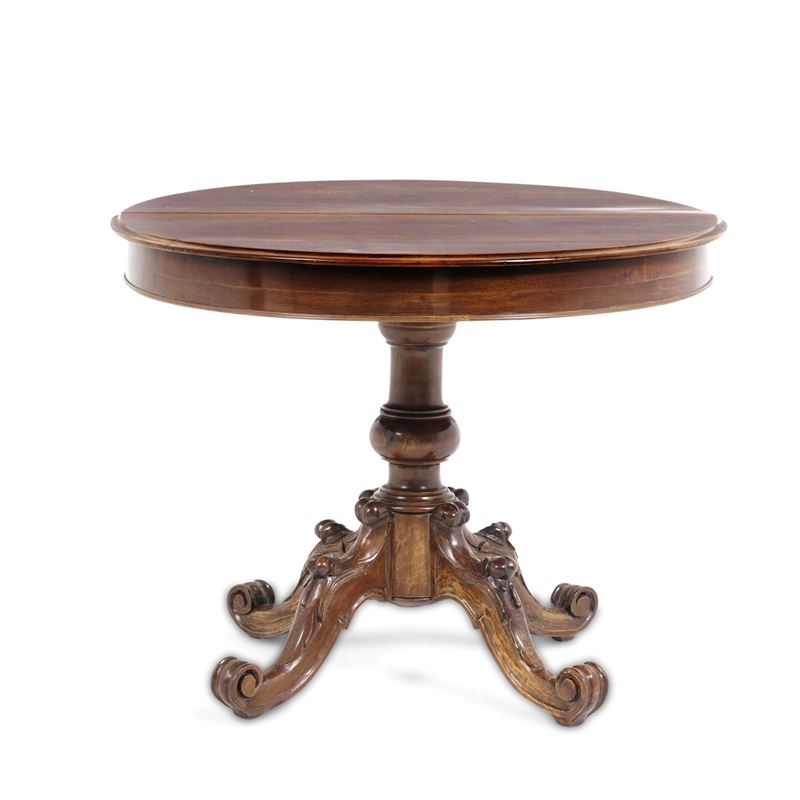 Tavolo tondo allungabile in mogano. Fine del XIX secolo