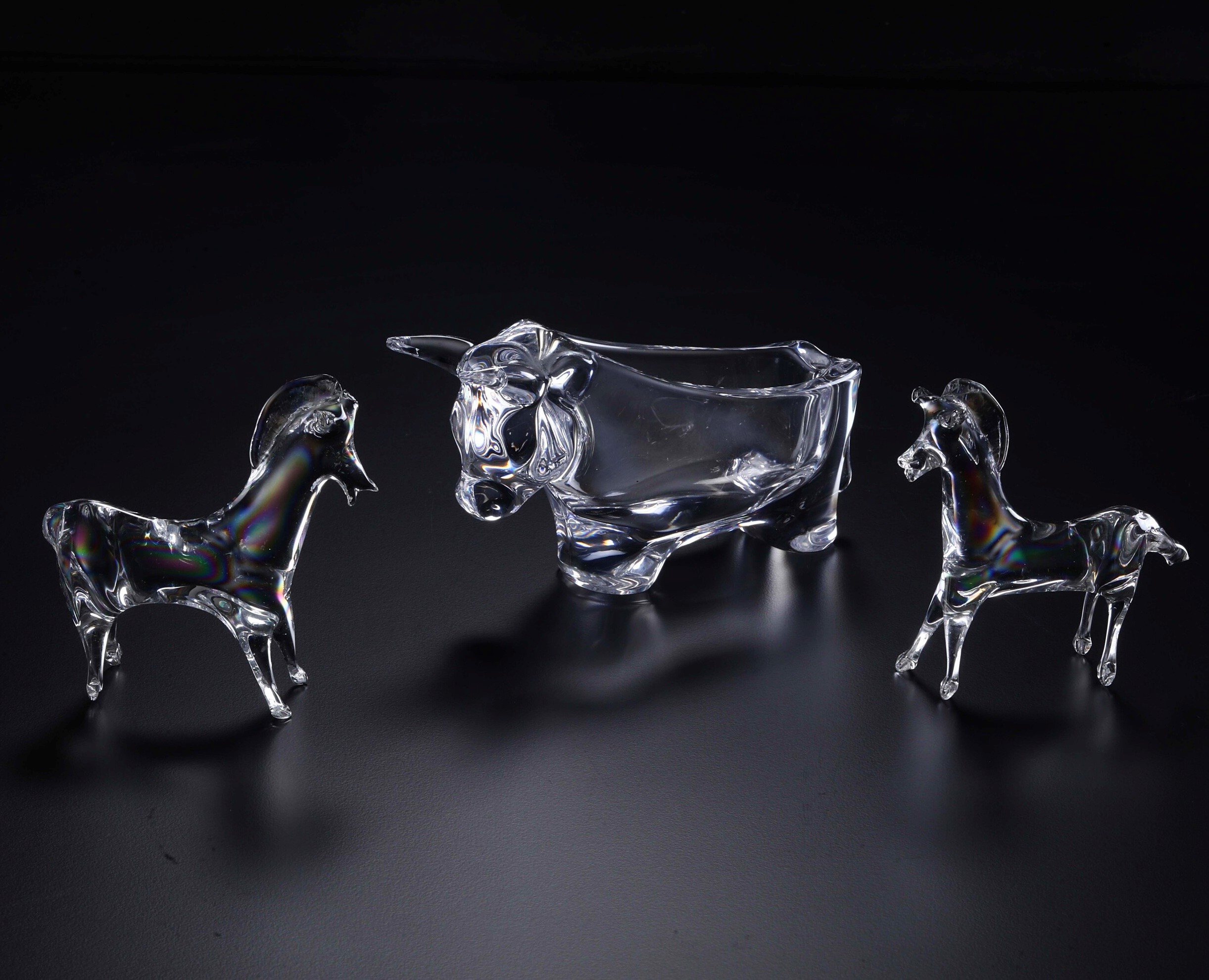 Tre statuine in cristallo (un toro e due cavalli)