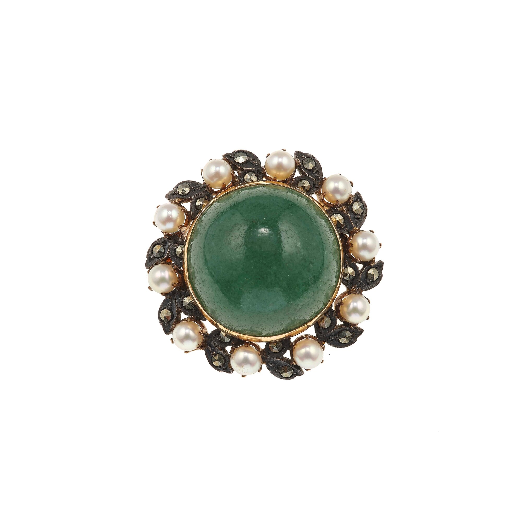 Aventurine, pearl, gold and silver brooch