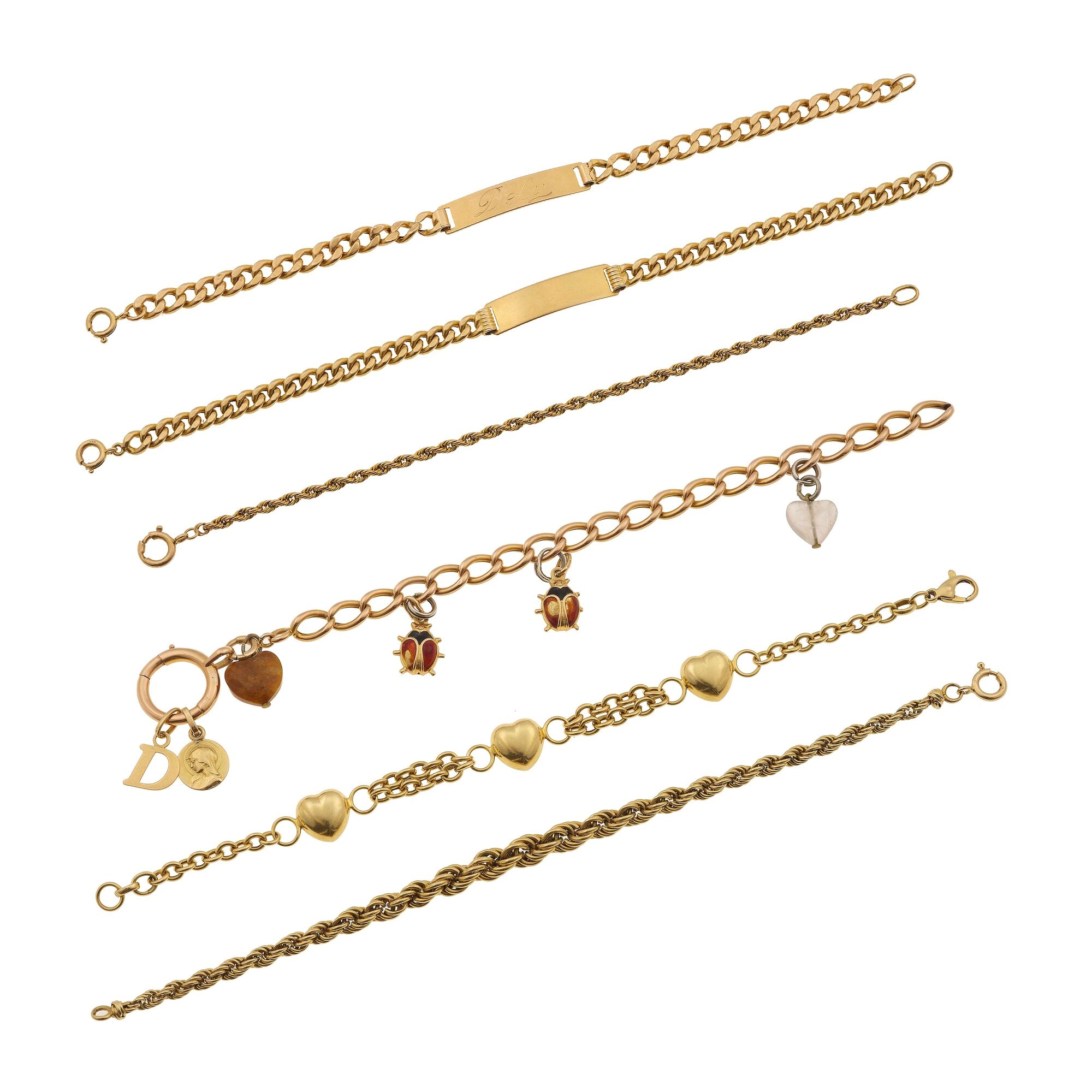 Six gold bracelets