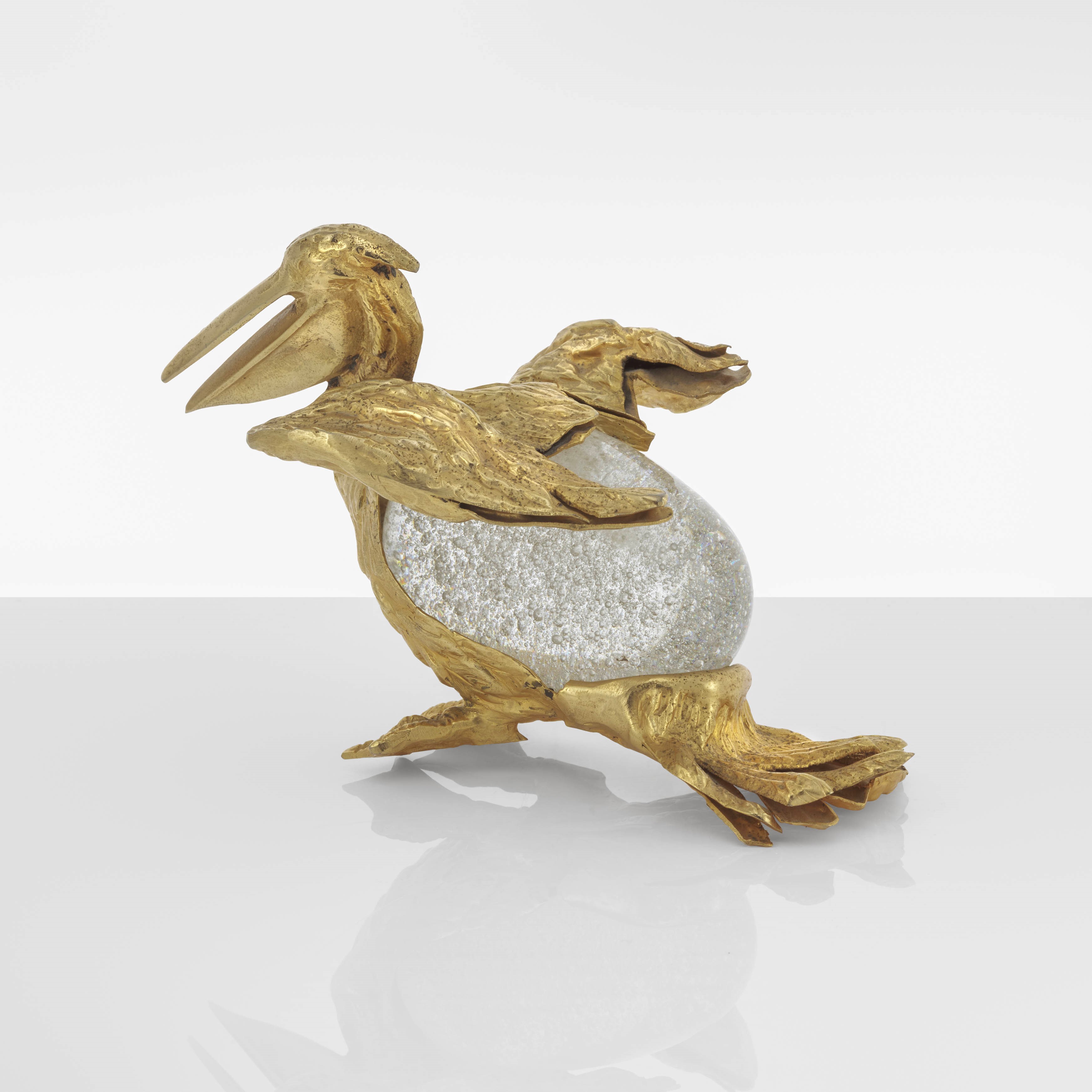 Between 1970 and 1974, she created the small animals. All the different sculptures that make up the bestiary were made of polished, silver-plated, or gold-plated bronze and incorporate a transparent Murano glass egg, specially made by the famous Barovier&Toso glassworks.