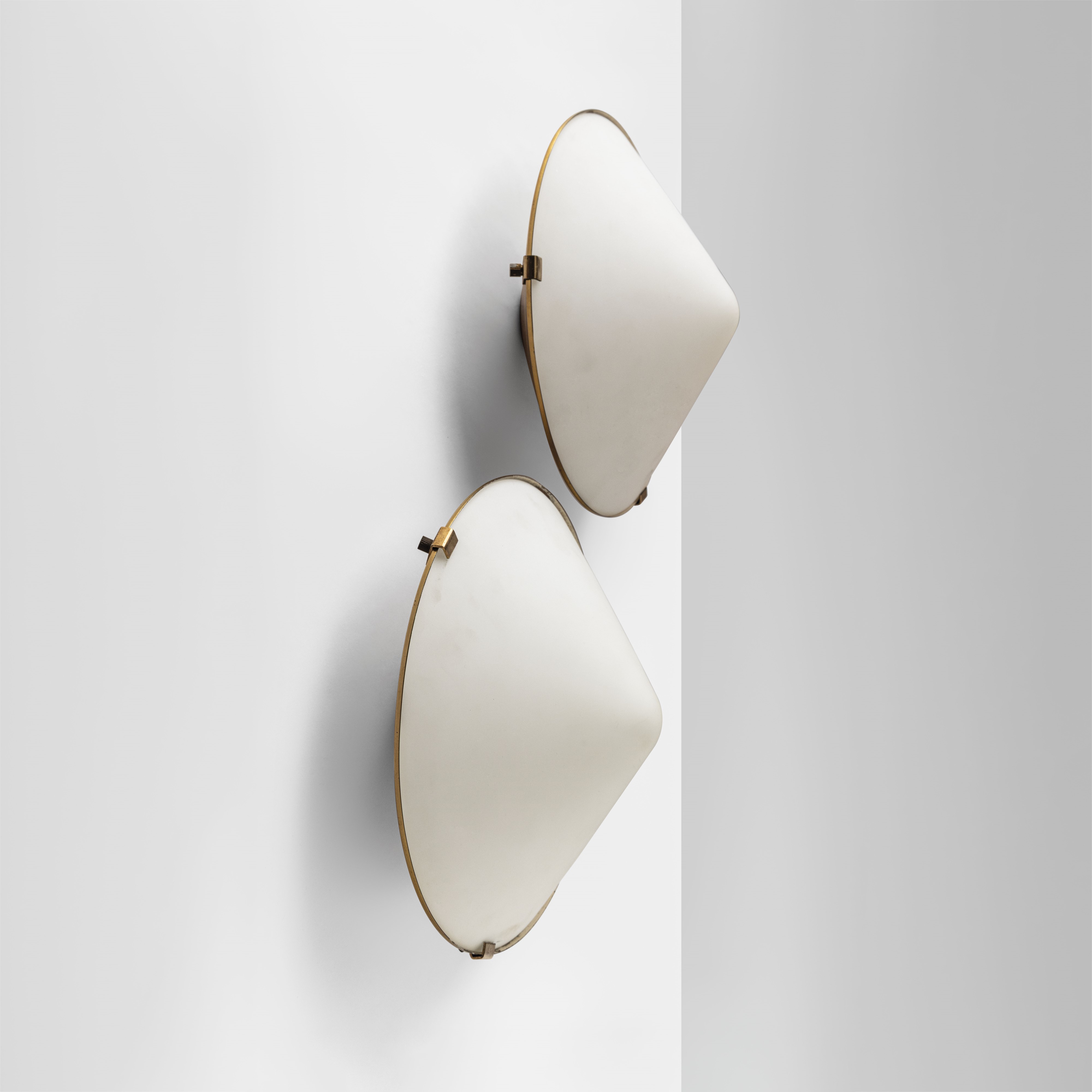 Brass structure. Opaline curved satin-finished glass.