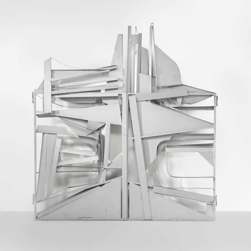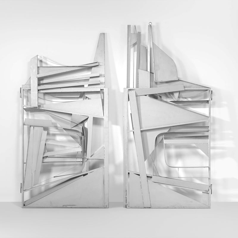 Two welded painted iron swing elements.