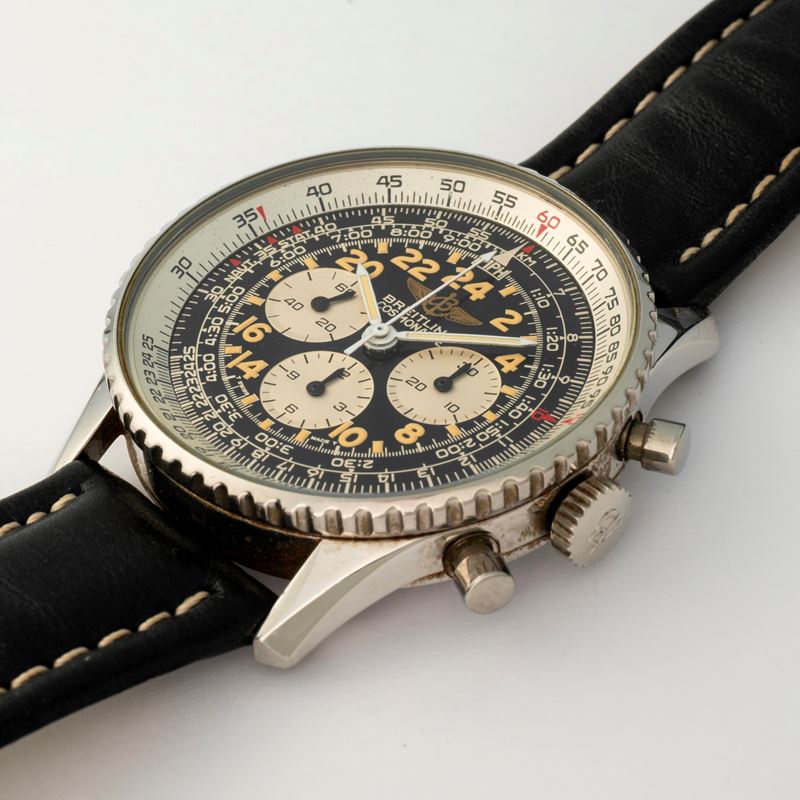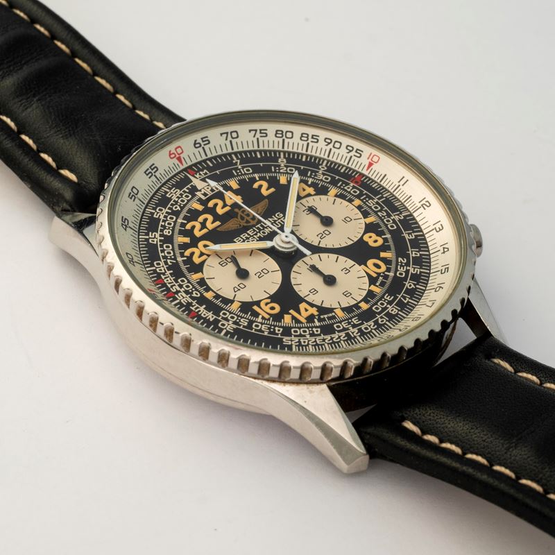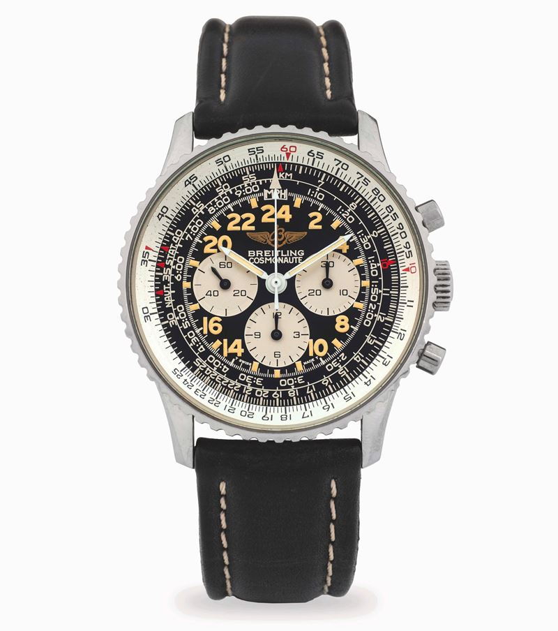 Cosmonaute ref. 81600 in steel with black dial, contrasting subdials, and rotating inner bezel, circa 1990