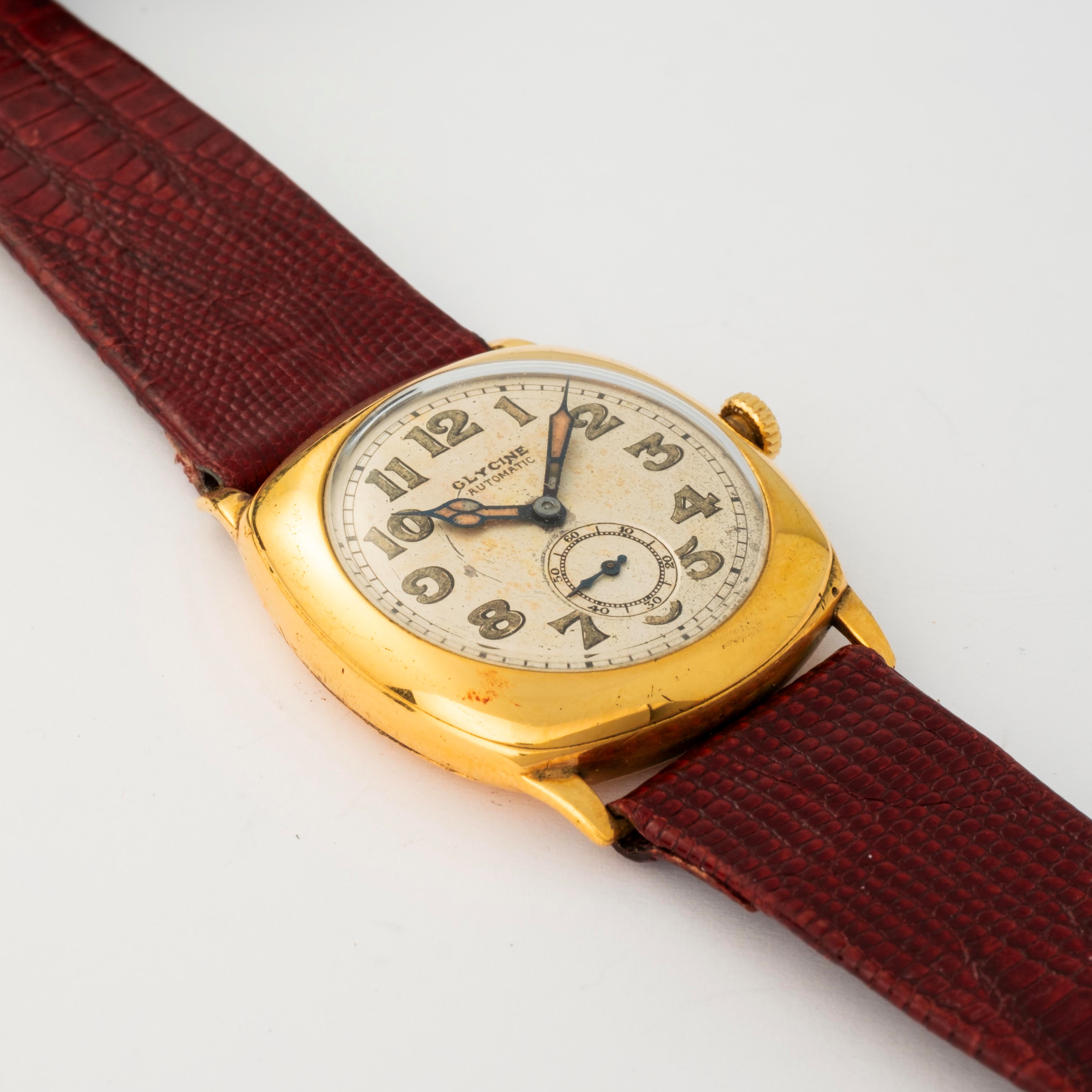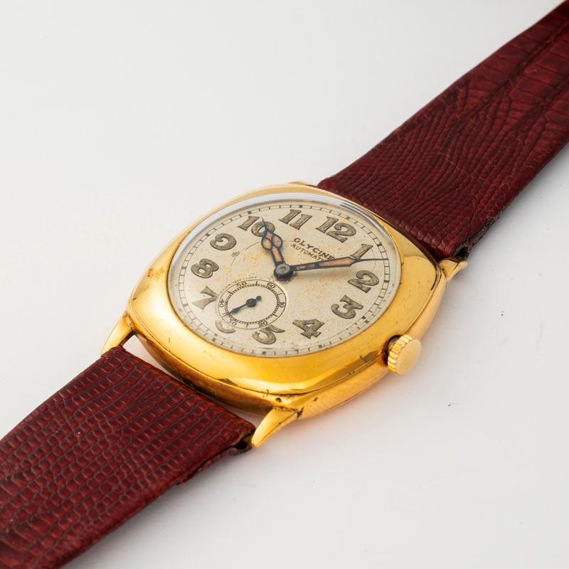 Automatic hammer-winding, with cushion-shaped laminated case, circa 1920