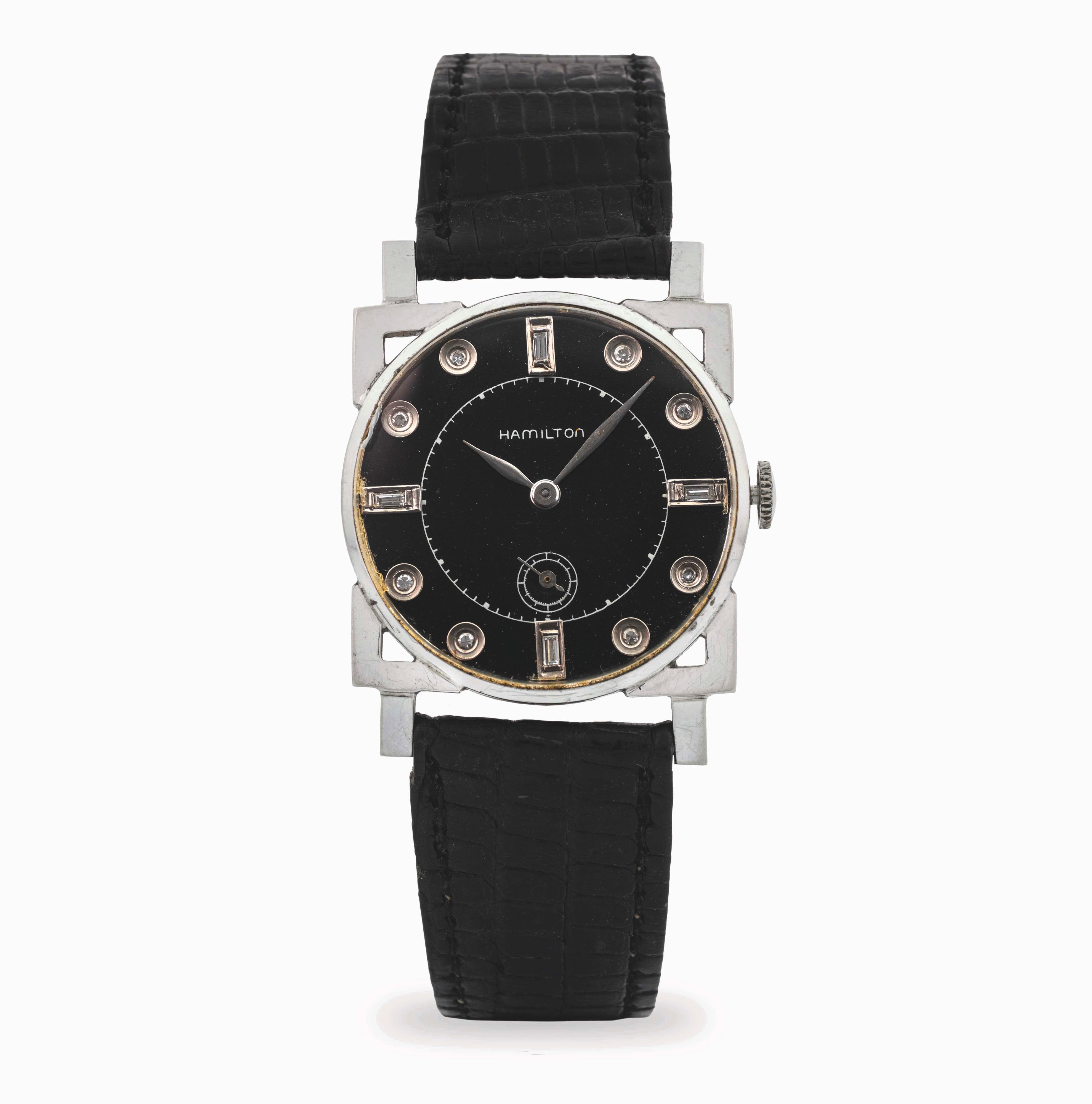 Carré in white gold 14k, black dial with diamond indexes, circa 1940