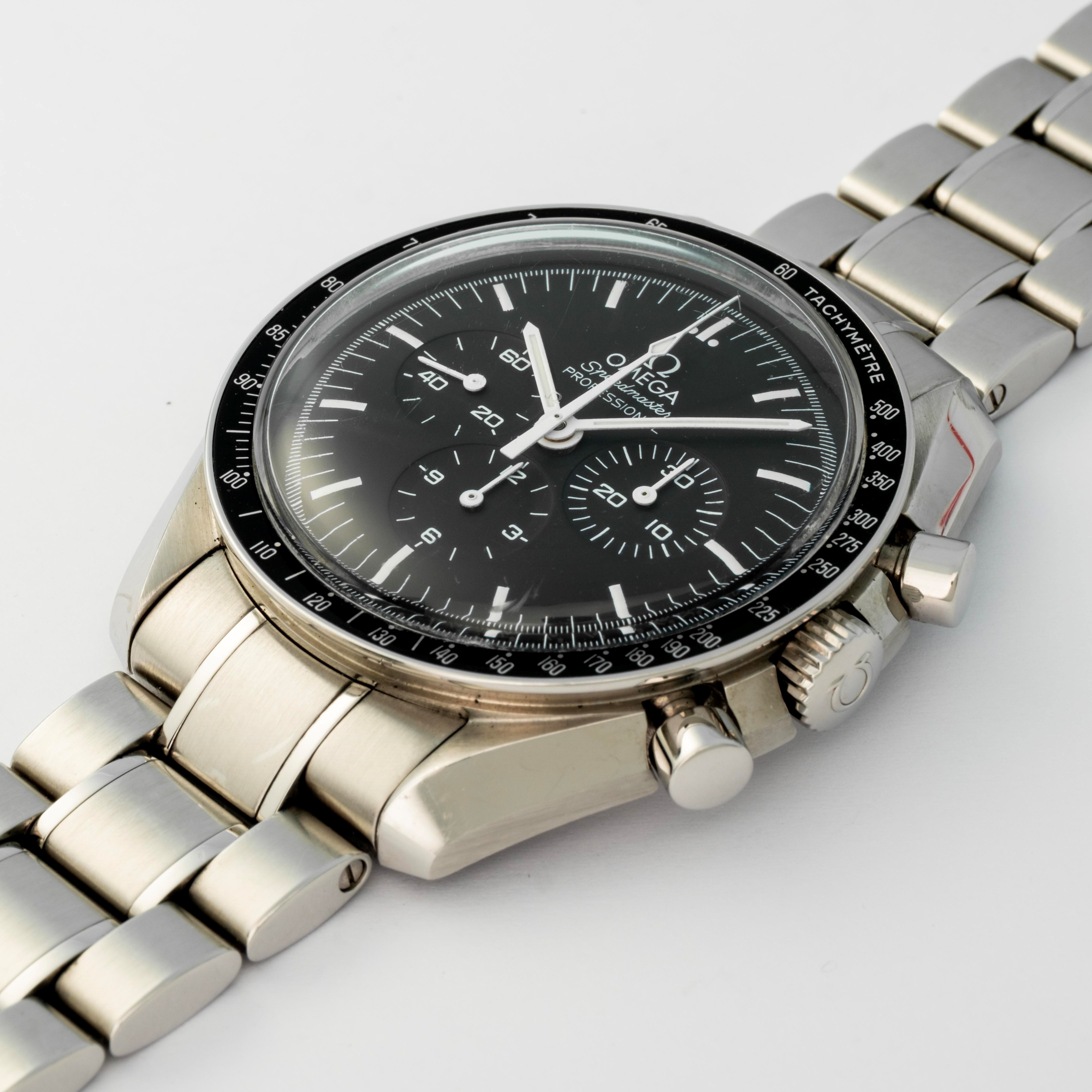 Speedmaster Professional in acciaio, quadrante nero con tre contatori, circa 2005
