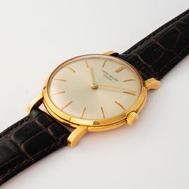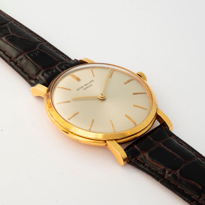 Calatrava in 18k yellow gold with silvered dial and applied indexes, circa 1960