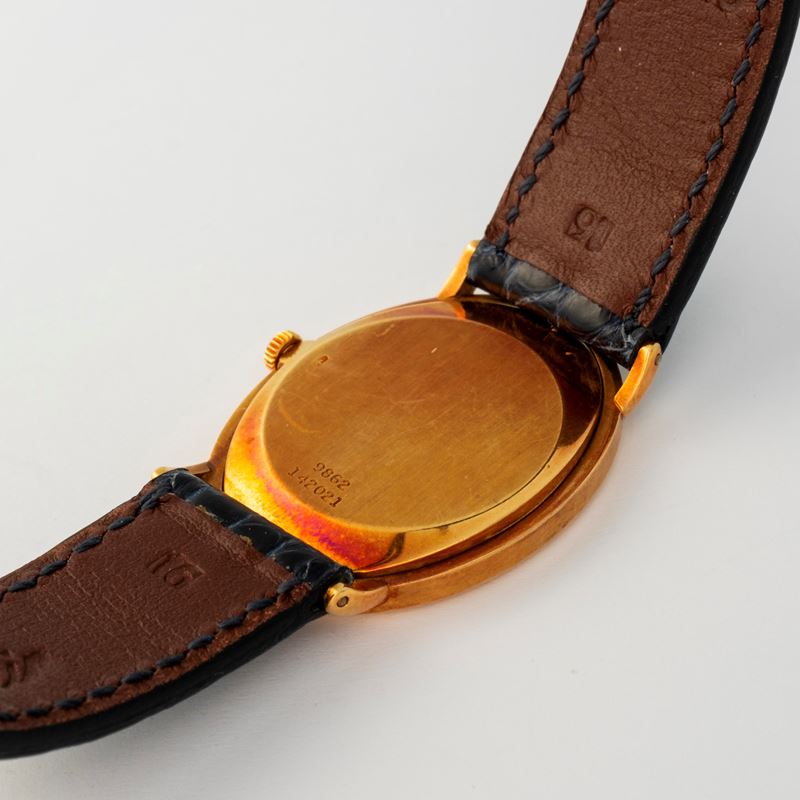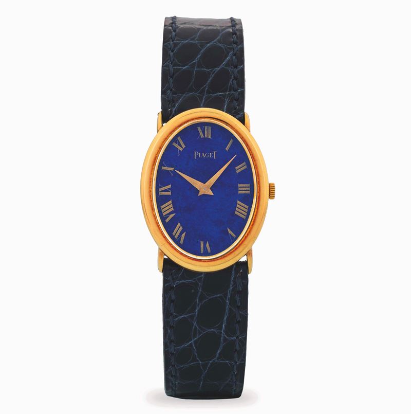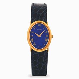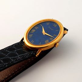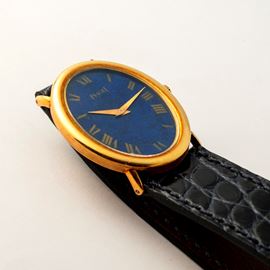 Oval in yellow gold 18k with lapis dial and Roman numerals, circa 1980