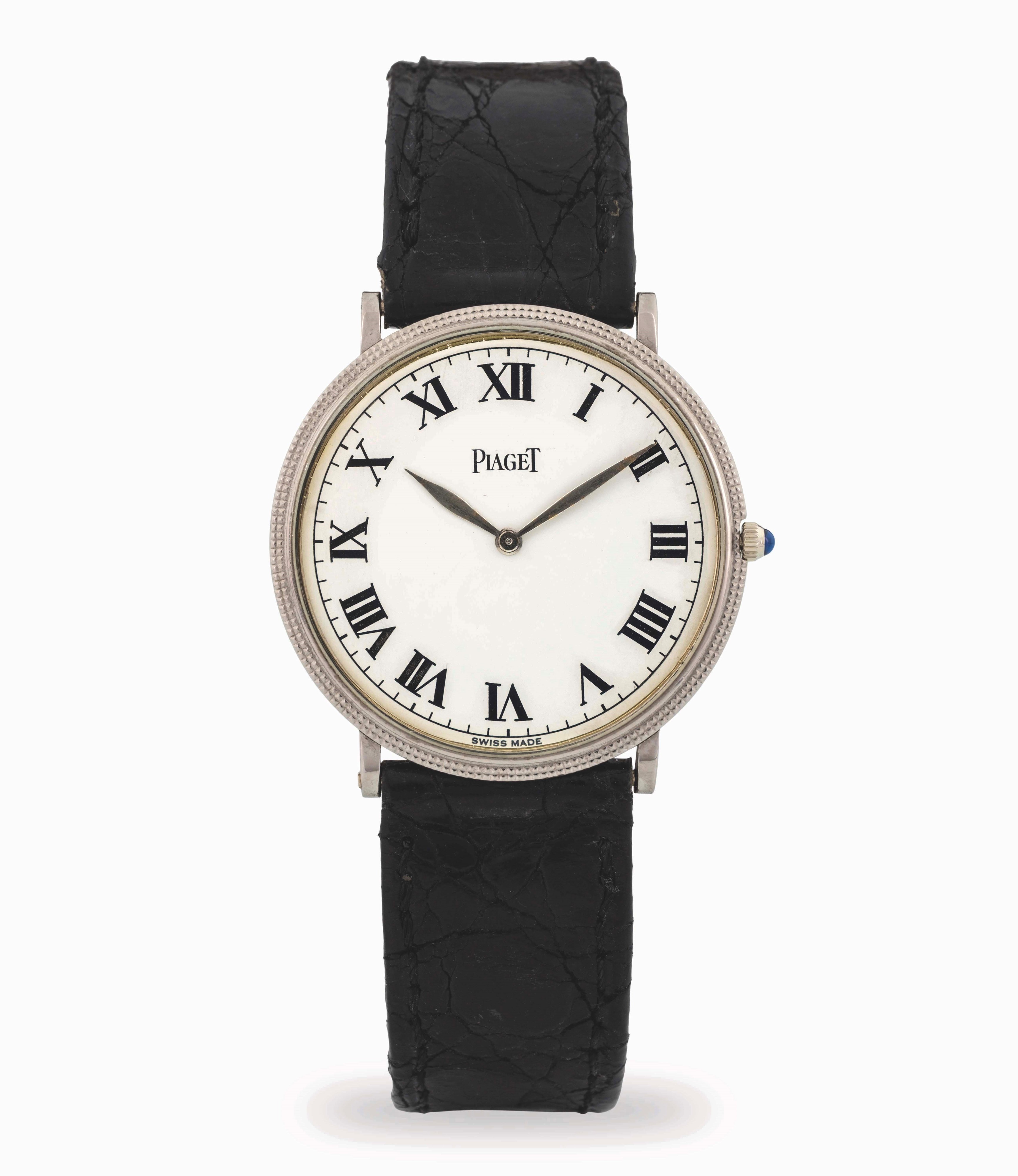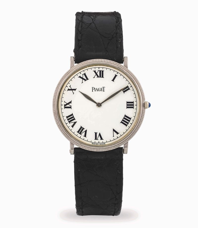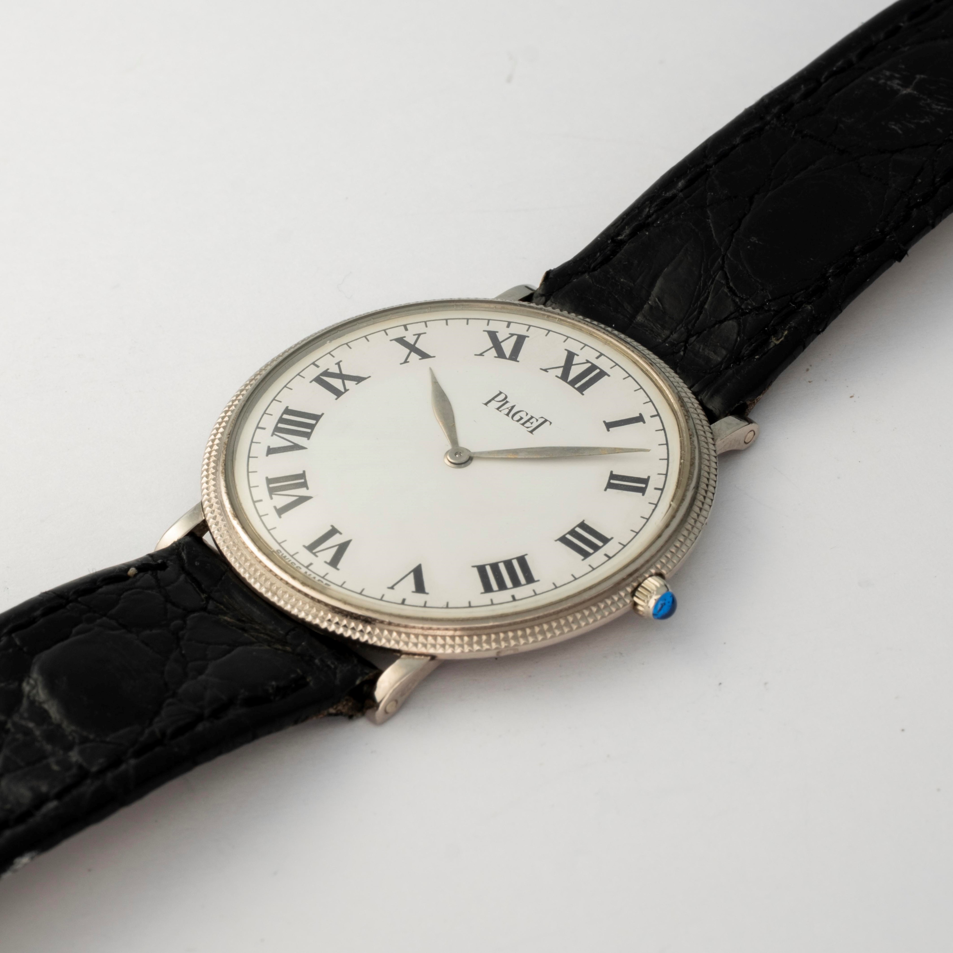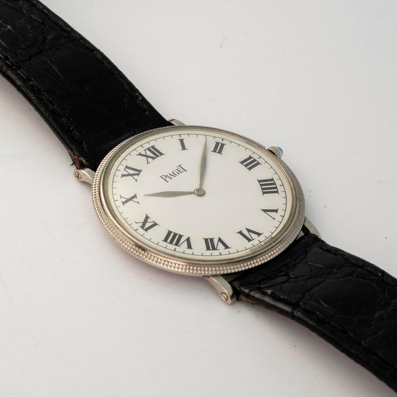 Ultra-thin watch in yellow gold 18k, white dial with Roman numerals, circa 1980