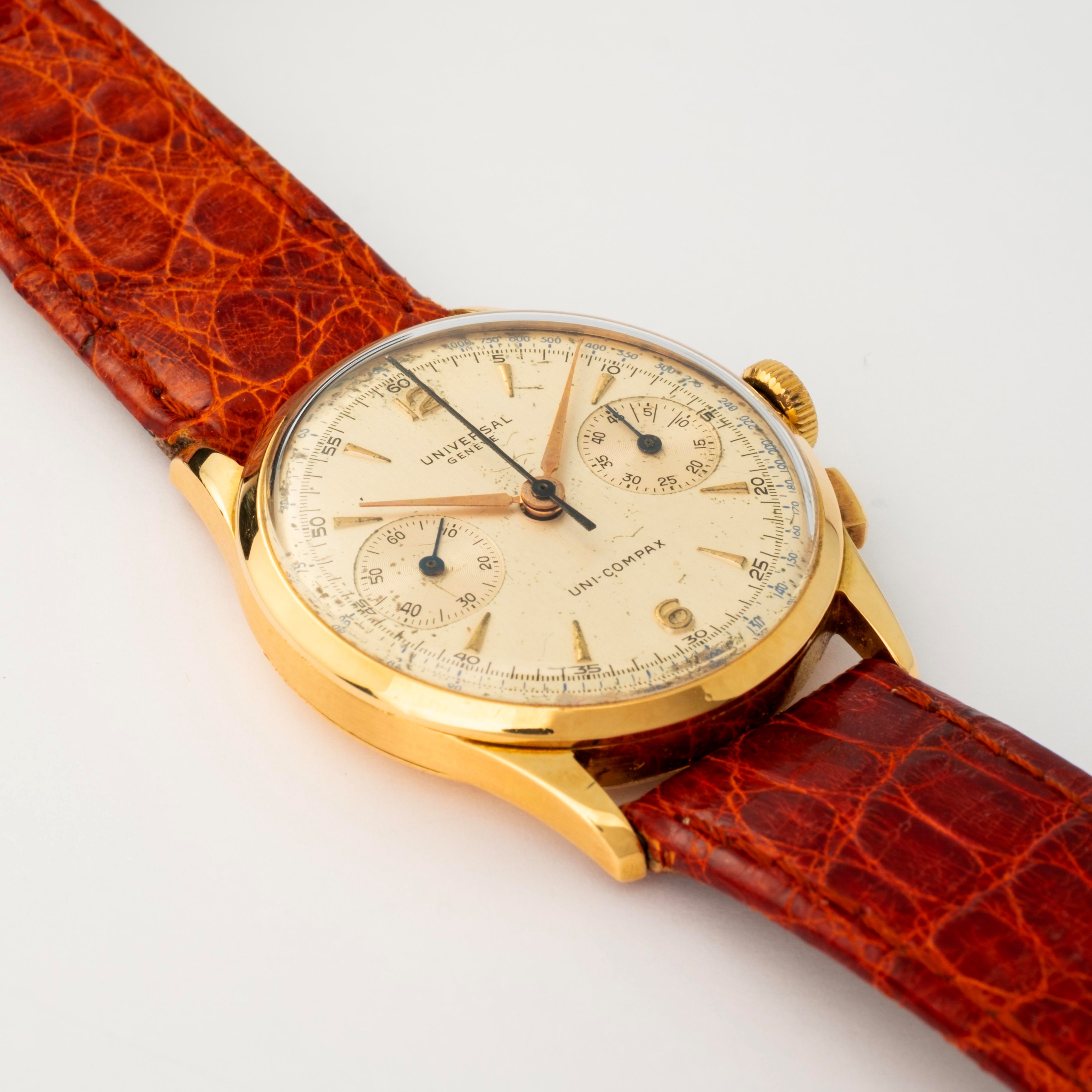 Uni-Compax chronograph in 18k gold, silvered dial, circa 1940