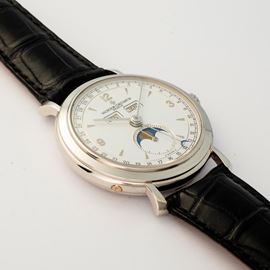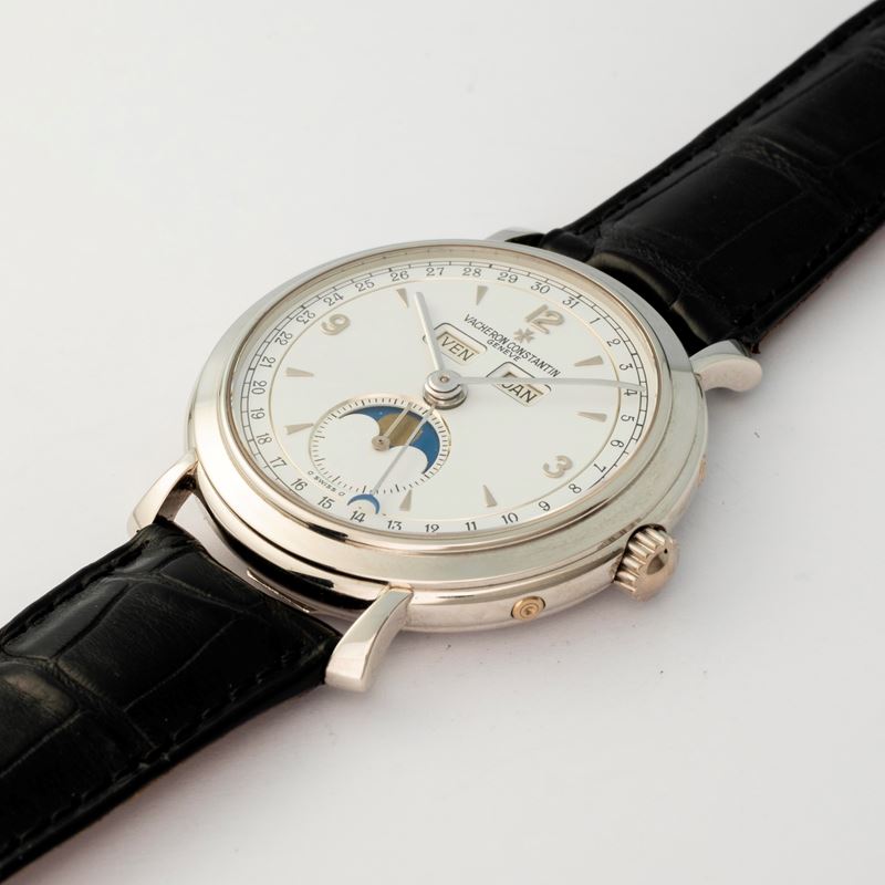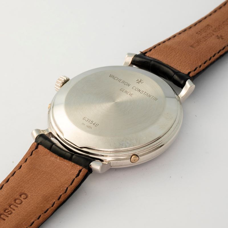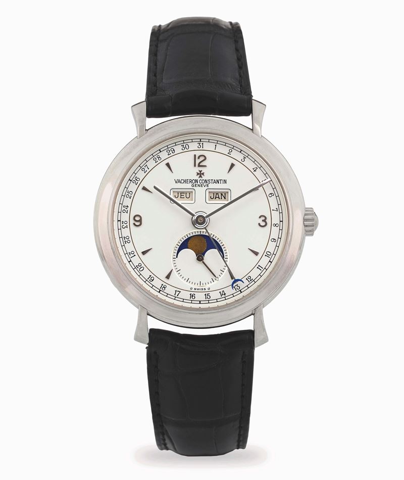 This lot fully embodies that spirit: it combines Vacheron Constantin’s technical savoir-faire in crafting the triple calendar movement with the purity of its aesthetic codes, featuring a balanced and detail-rich dial. All of this is housed in a precious platinum case, a material chosen to emphasize the rarity and significance of the timepiece.