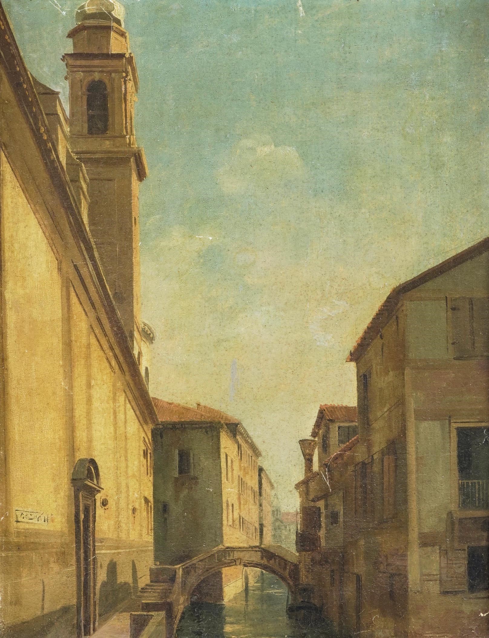Pittore dell'inizio del XIX secolo Veduta di canale a Venezia