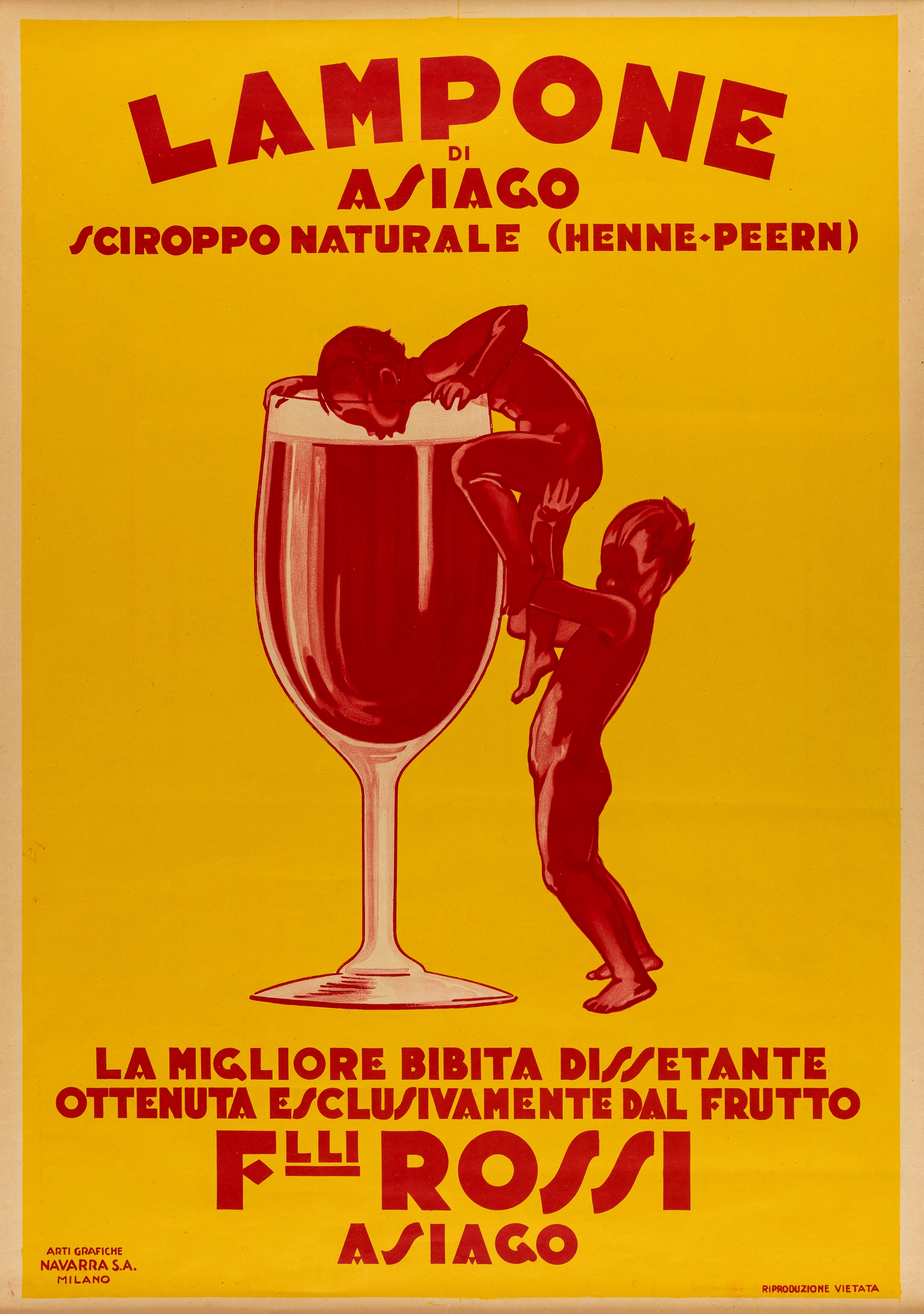 Affisso litografico, 1925 ca. Impresso da Arti Grafiche Navarra S.A - Milano. Cm 100 x 70. Qualità A-