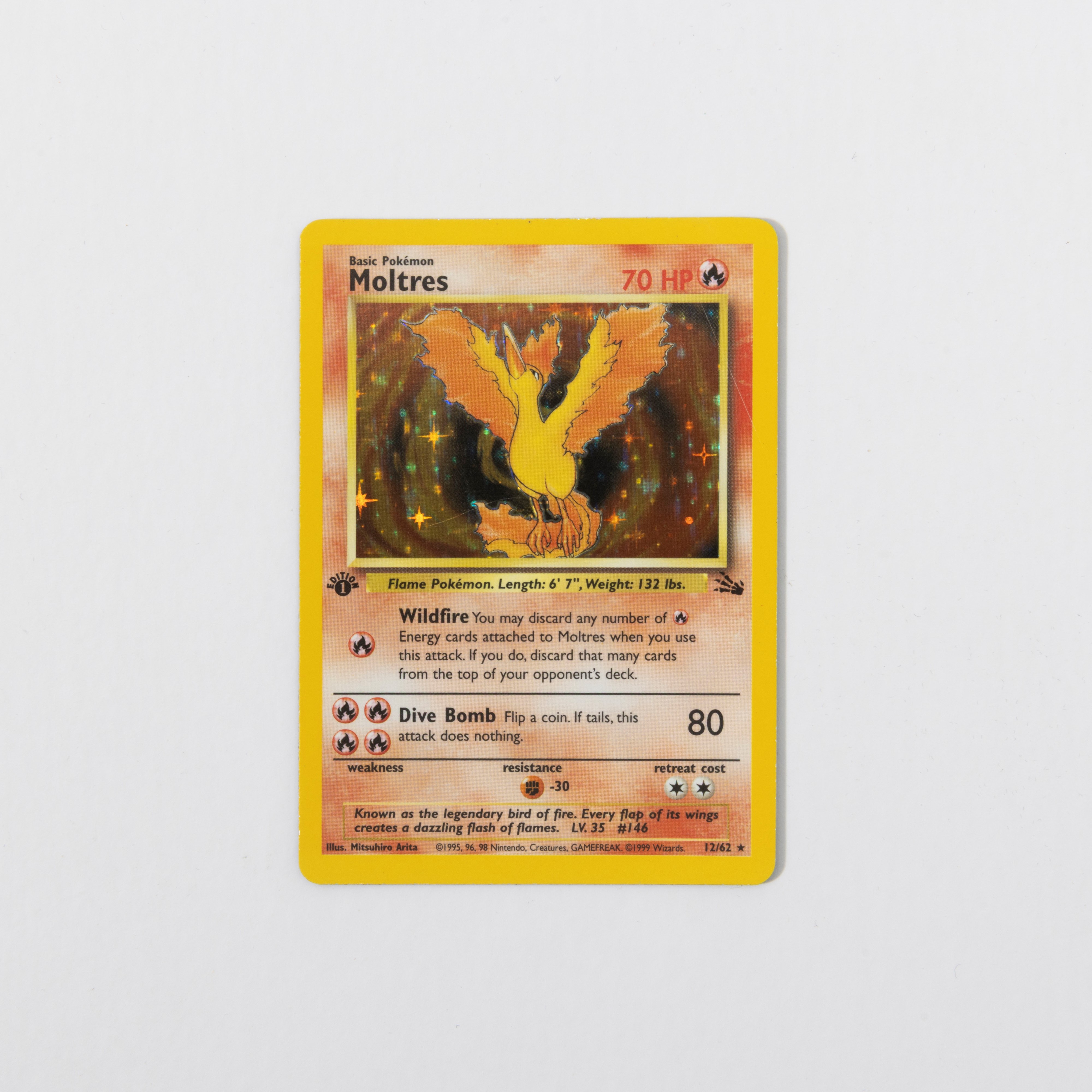 Holo 1st Edition UK, # 12/62 Fossil English, 1999, good condition.