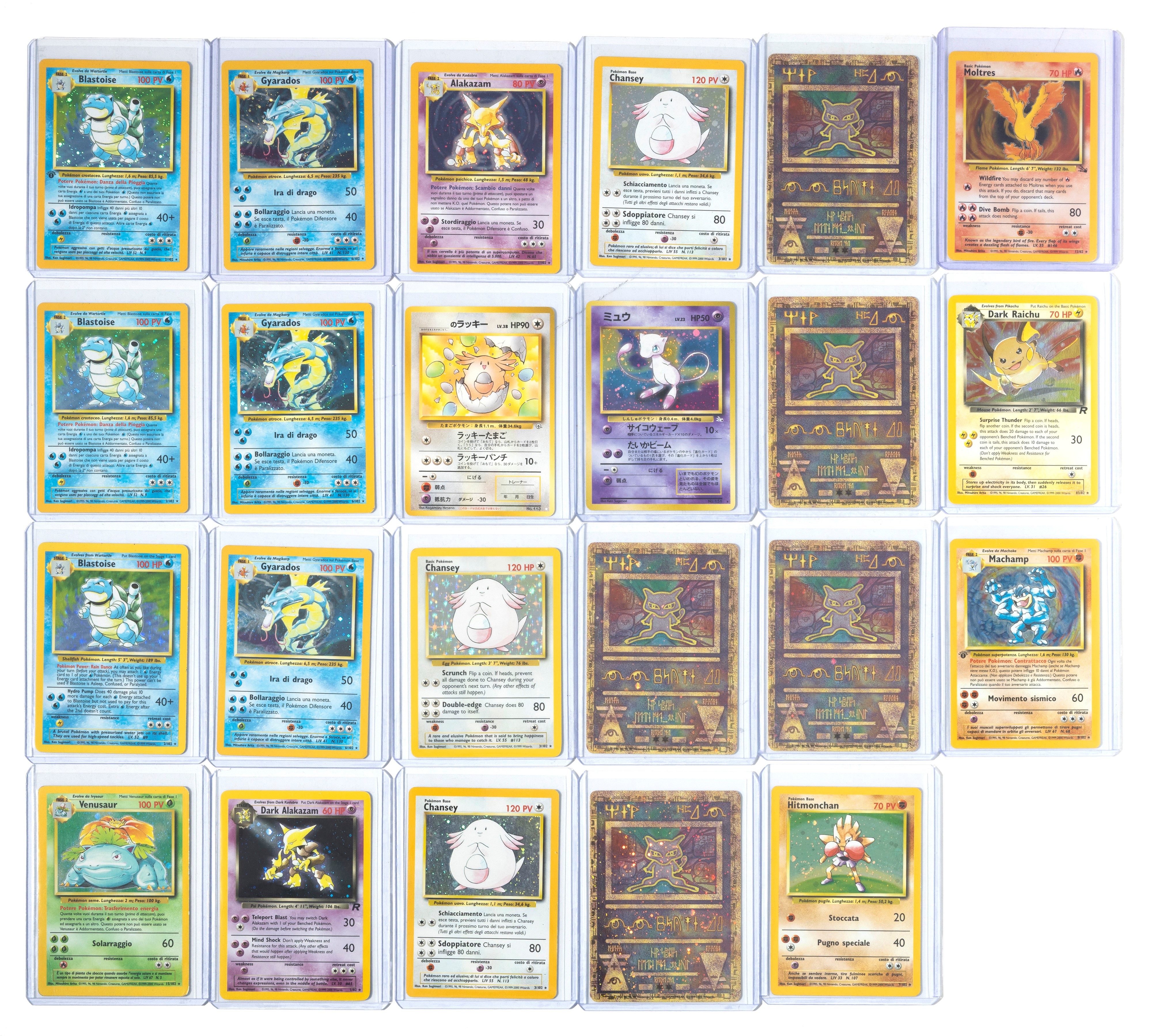 Lotto misto di n.23 carte rare sfuse Pokemon 1996-2000, Mixed Set Holo di 23 carte UK, JAP e ITA