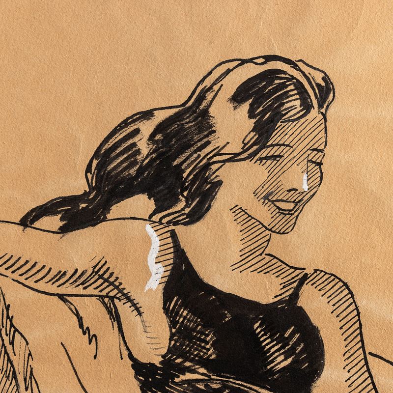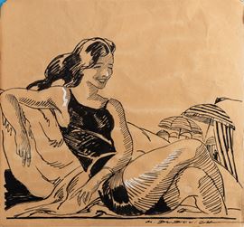 Bozzetto a china,1920 ca. Cm 35 x 38. Firmato in basso a dx.