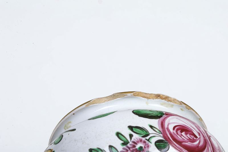 Maiolica. Marca: assente. Altezza cm 20. Conservazione: qualche piccola sbeccatura ai bordi