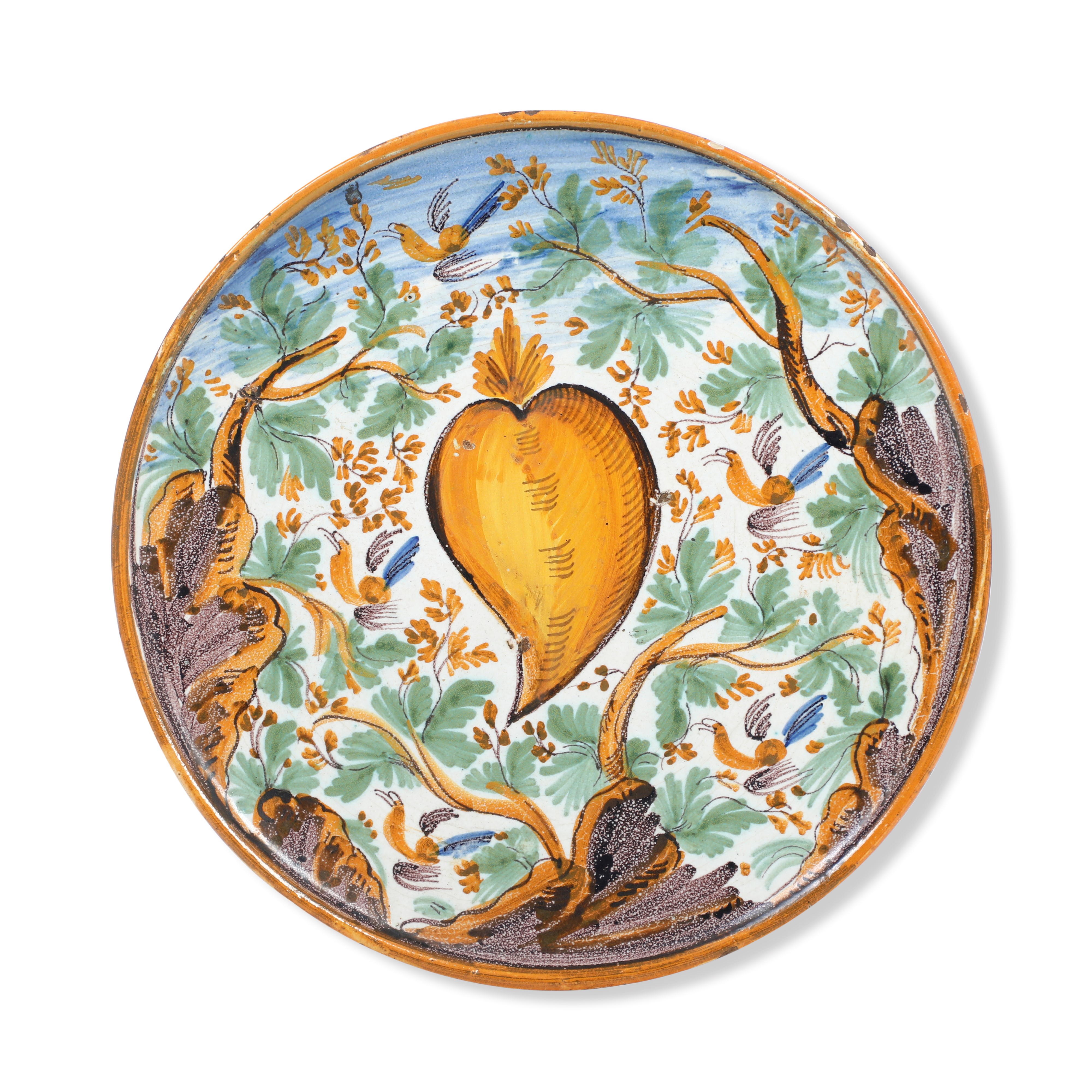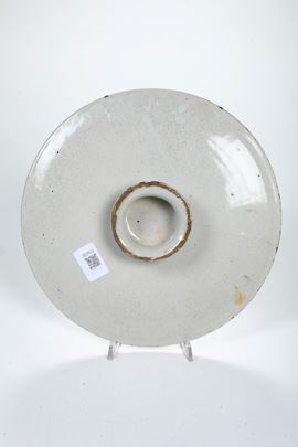Maiolica. Dimensioni: altezza cm 5; diametro cm 28,6. Conservazione: ottima; insignificanti salti di smalto