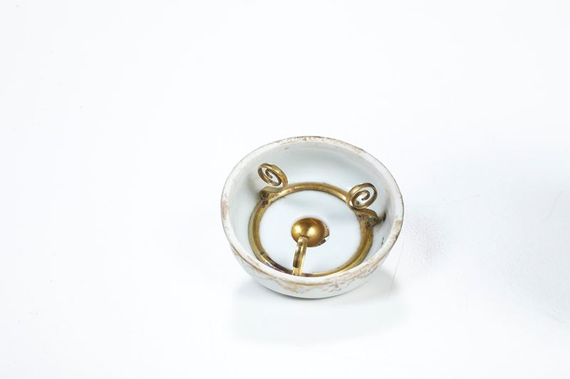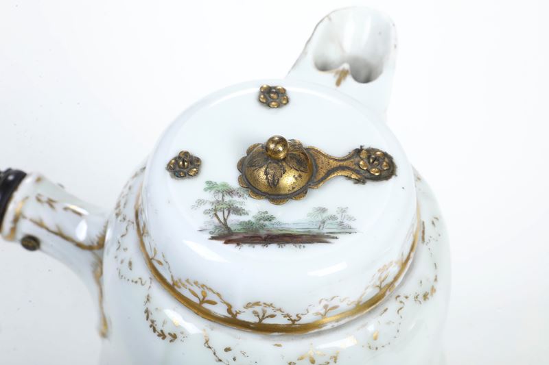 Porcellana. Marca: onde in blu. Altezza cm 20. Conservazione: ottima; usure all’oro; insignificante felatura al beccuccio