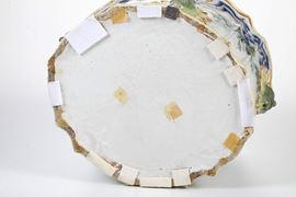 Maiolica decorata con colori a gran fuoco. Marca: lanterna in manganese. Dimensioni: altezza cm 35,5; diametro massimo cm 54. Conservazione: felature e qualche piccola mancanza ricomposte in vecchio restauro