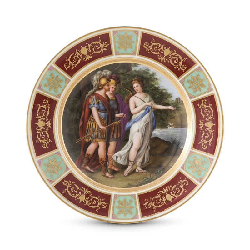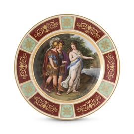 Il piatto è decorato alla maniera della Manifattura Imperiale di Vienna, periodo della direzione di Conrad von Sorgenthal.