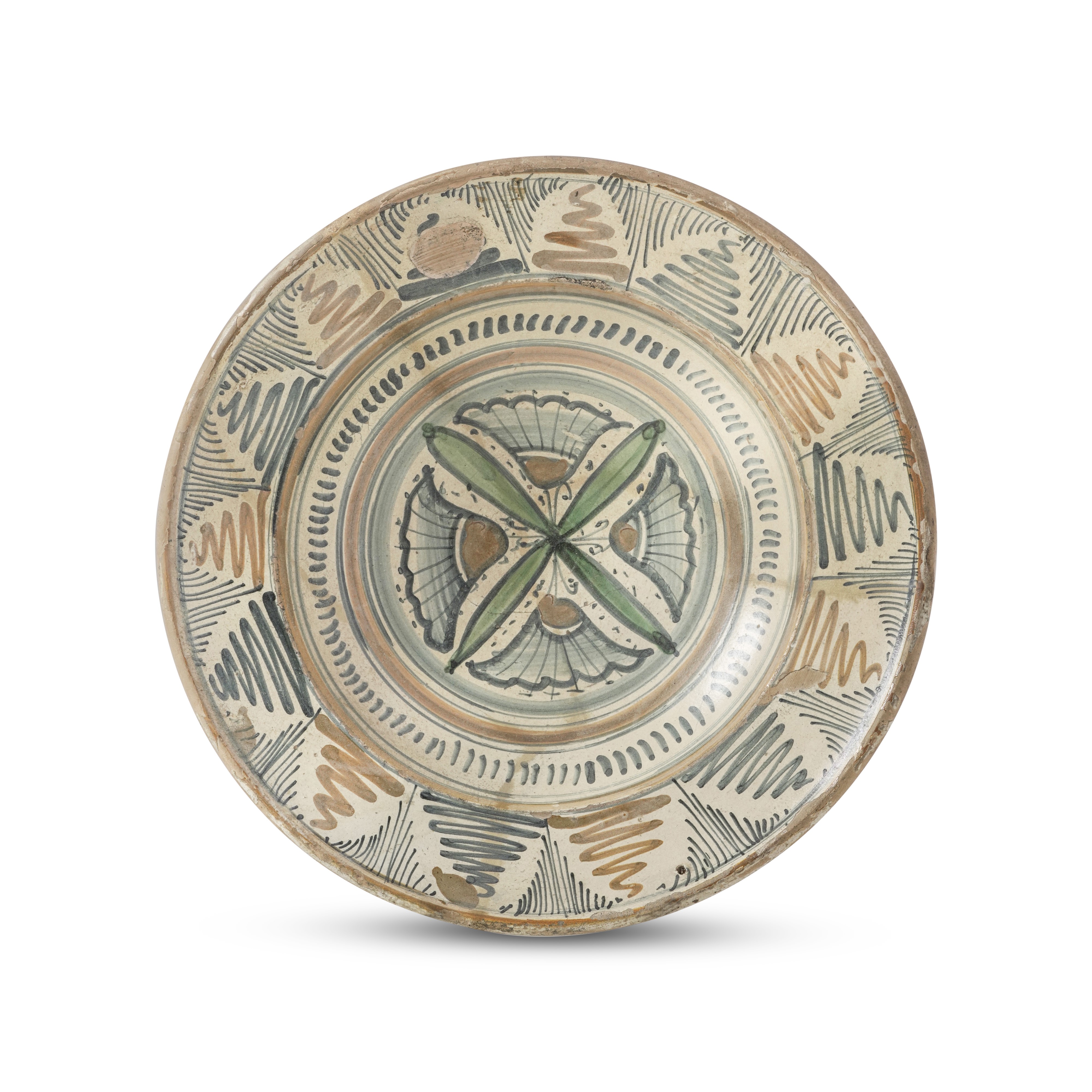 L’opera manifesta la buona padronanza tecnica e decorativa della ceramica derutese della fine del Quattrocento, premessa alle più superbe espressioni ceramiche del secolo successivo. Qui siamo ancora una fase “severa” o tardo- gotica, in cui vengono impiegate a Deruta, come in Toscana, nelle Marche e in Romagna, le stesse raggere “bernardiniane”, disposte a corona attorno ad un tema centrale. Un esempio di tematica fitomorfa simile si segnala in un piatto del Museo di Faenza (1)
