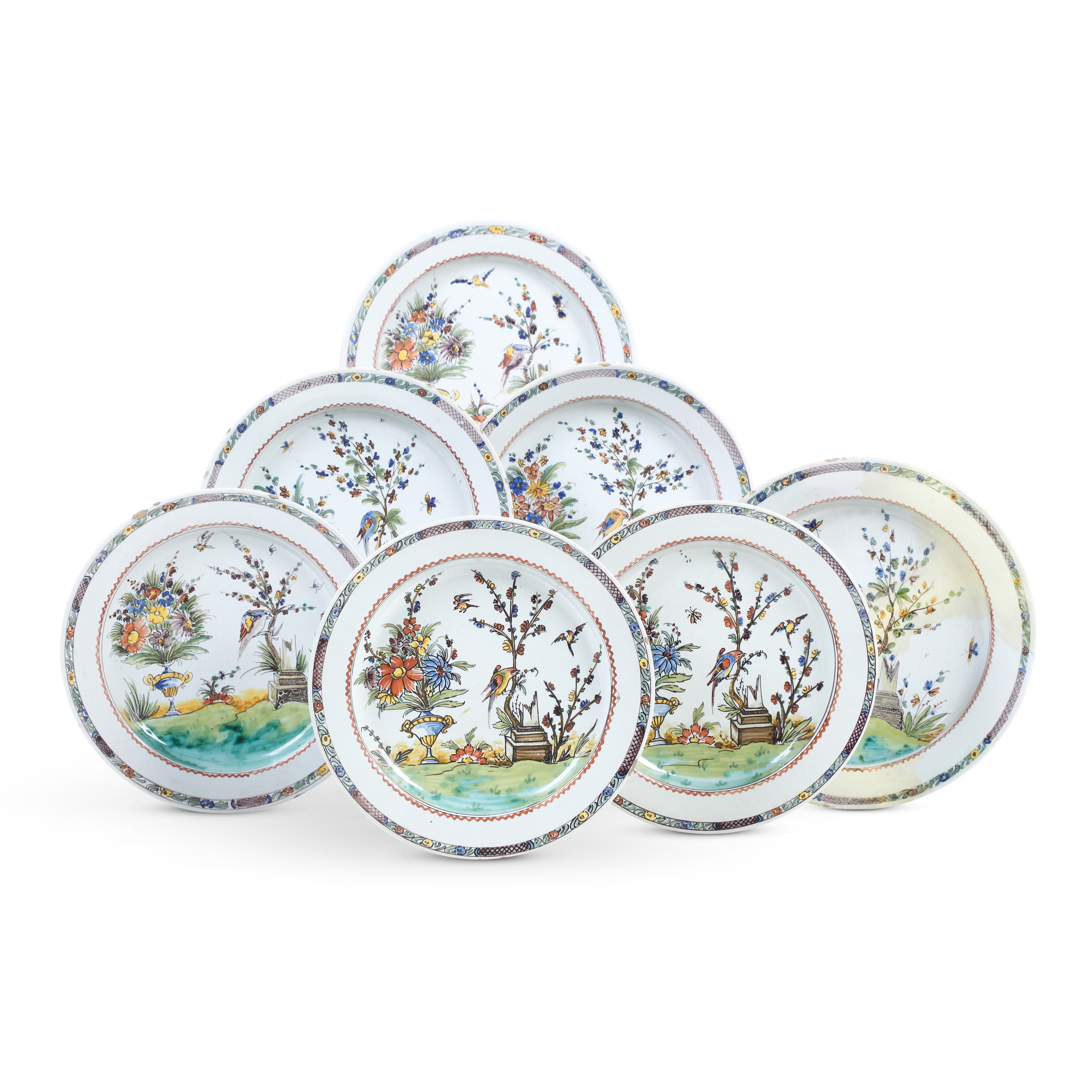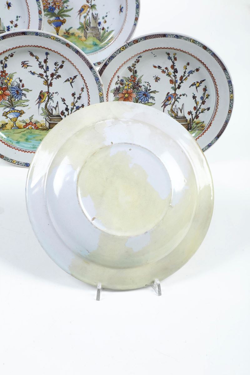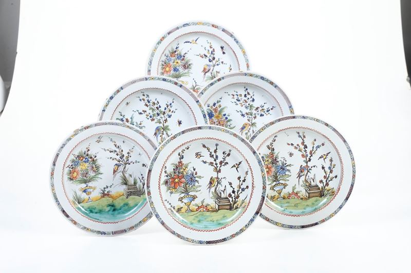 Sei piatti Faenza, Manifattura dei conti Ferniani, terzo quarto del XVIII secolo