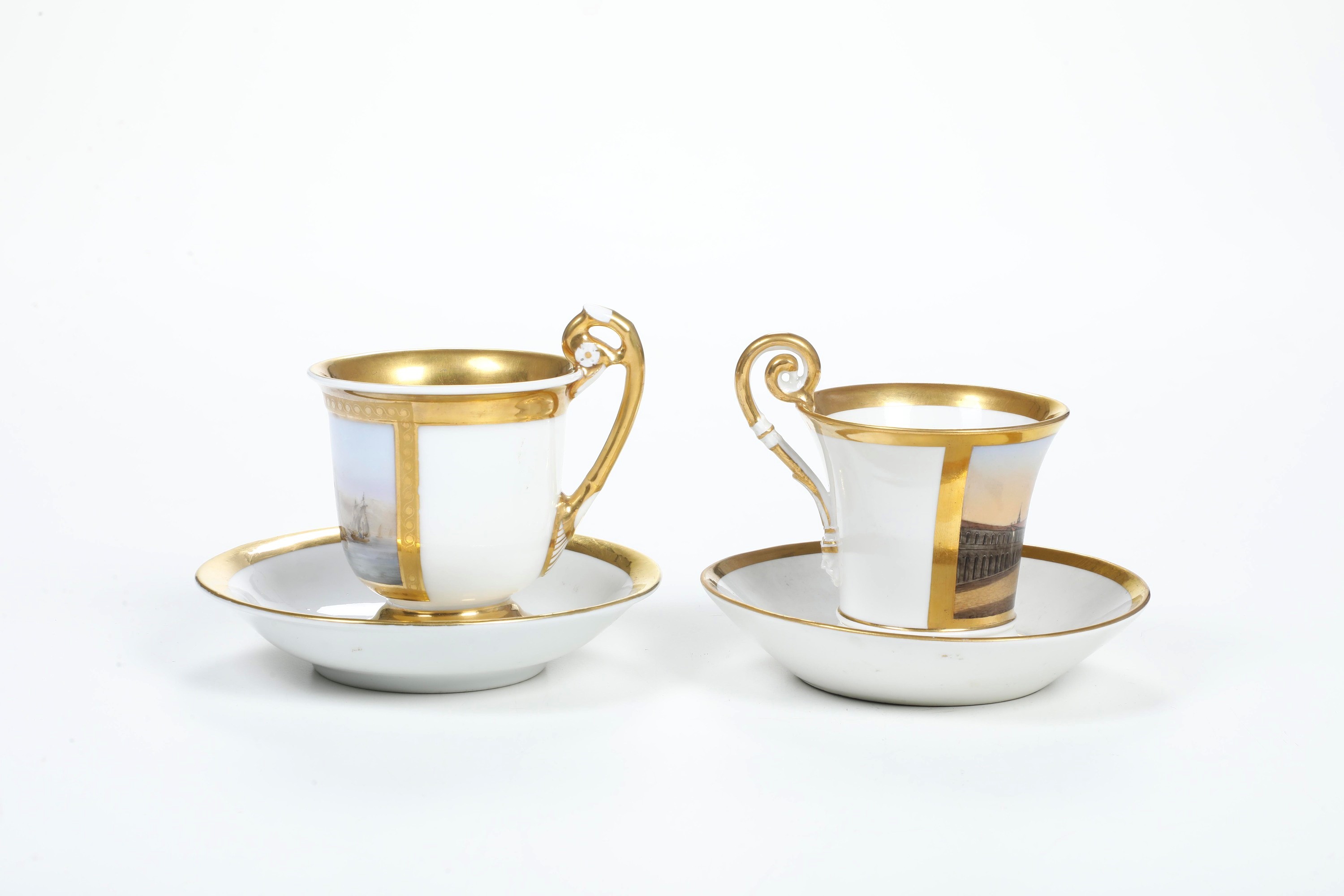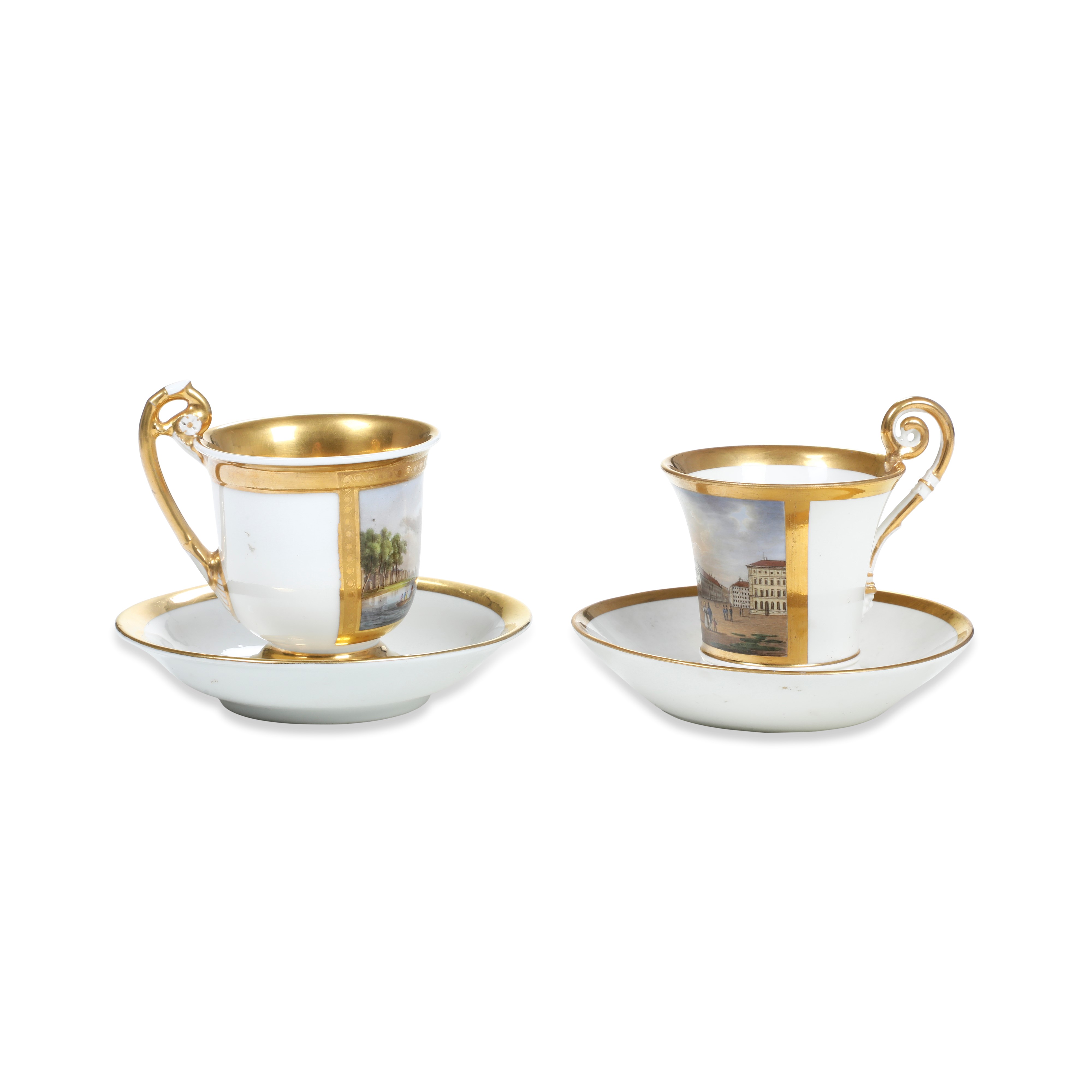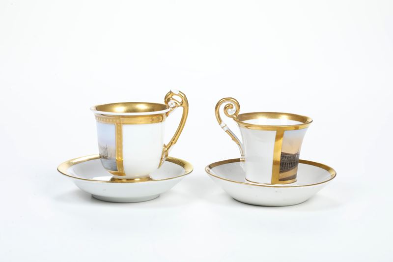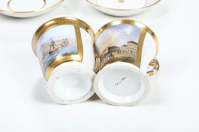 Al lotto si aggiunge una tazza in porcellana del XIX secolo con una veduta di Rotterdam (piattino non pertinente, marca assente. Conservazione: ottima)