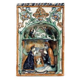 Con quest’opera ci troviamo di fronte ad una delle rare espressioni della piccola plastica maiolicata rinascimentale: rarità che fonda sia sulla modellazione plastica, realizzata a tutto tondo e a bassorilievo, sia sulla tipologia che esula dalla produzione vascolare delle botteghe ceramiche del tempo. Non solo, ma essa si distingue per la soluzione della capsa centinata racchiudente il “Presepe”, inglobata in un pannello rettangolare: soluzione che al momento la rende unica nel suo genere.