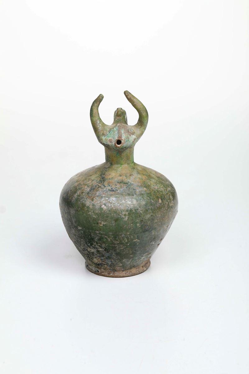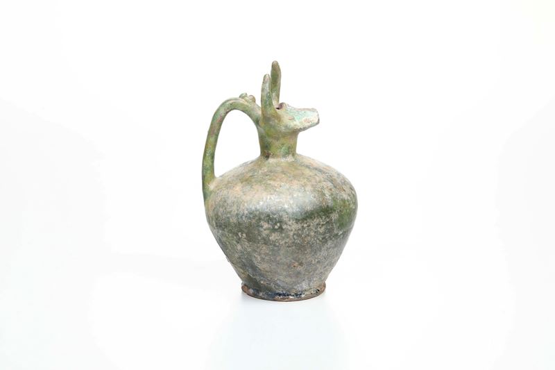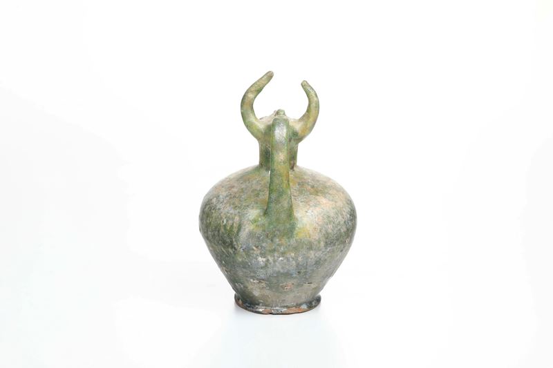 Ceramica asilicea. Altezza cm 24,2. Conservazione: buona; corna restaurate; piccole cadute di smalto e qualche insignificante sbeccatura