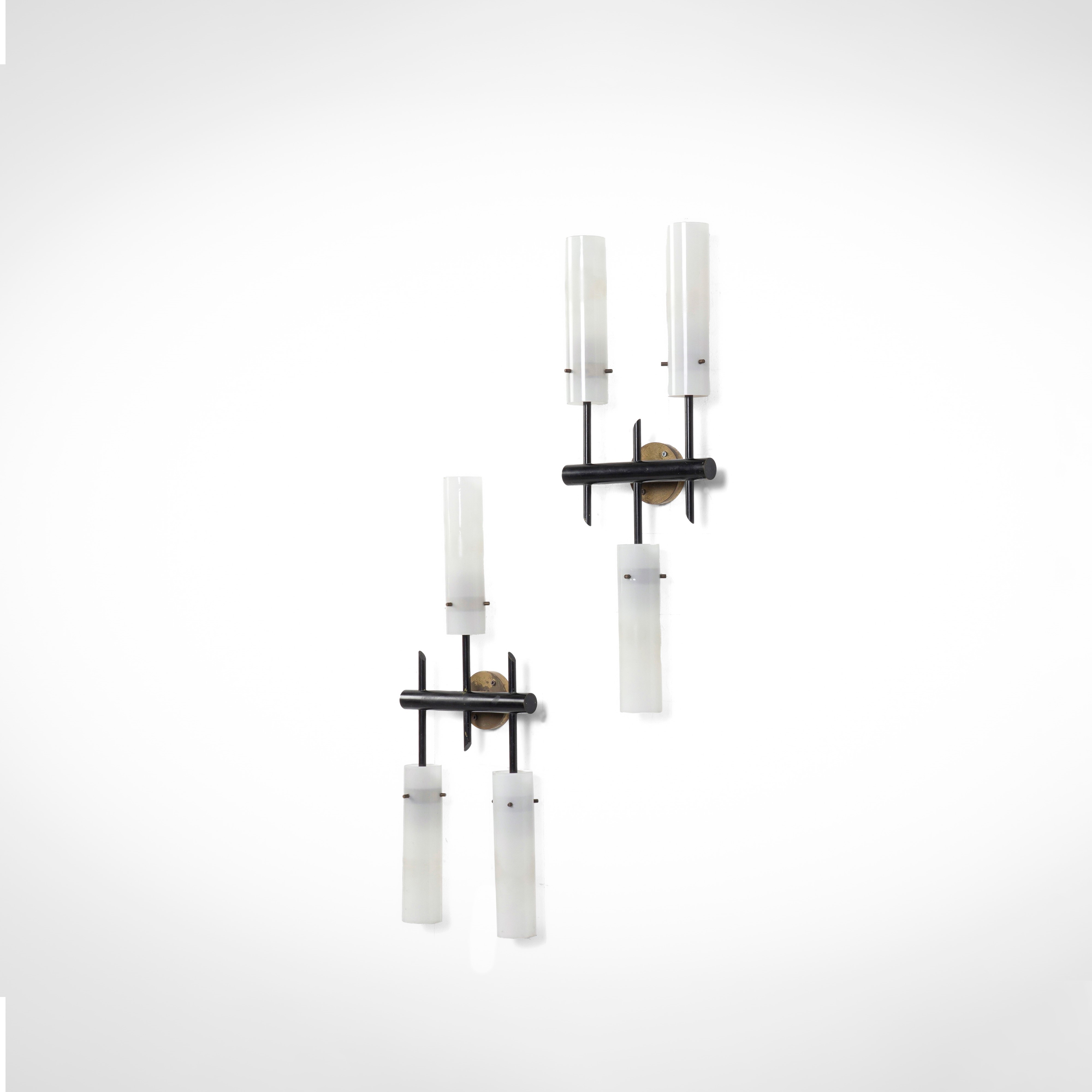 Struttura in ottone e metallo laccato con diffusore in vetro opalino.