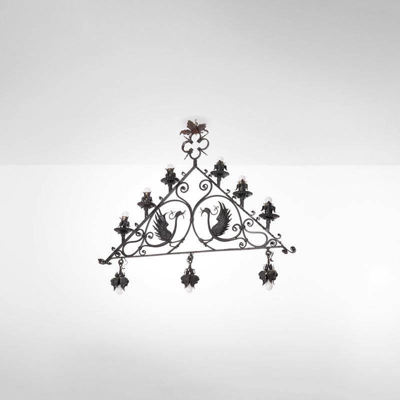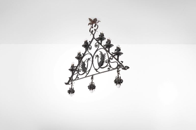 Struttura in ferro battuto e patinato.