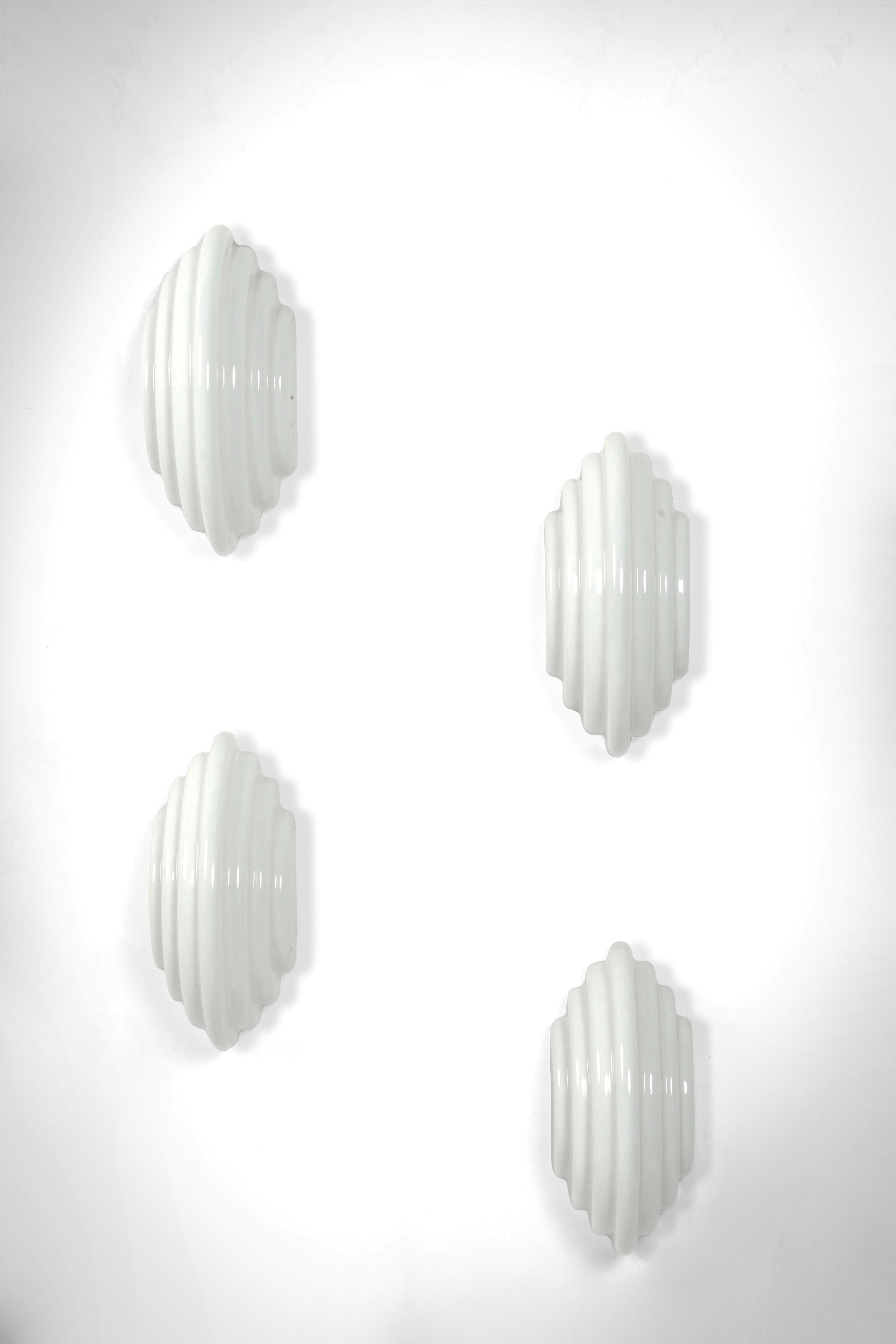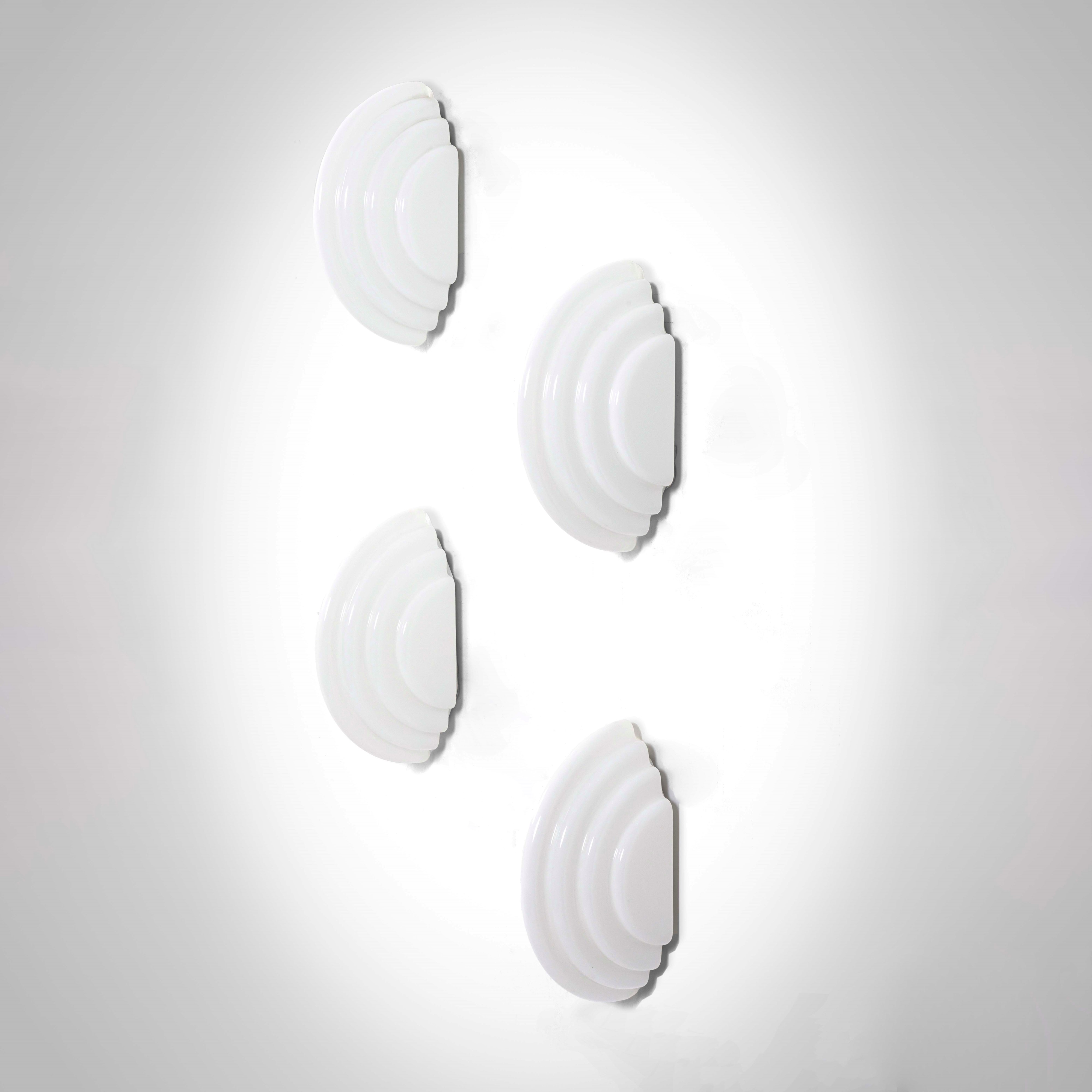 Struttura in metallo laccato e diffusore in vetro opalino.