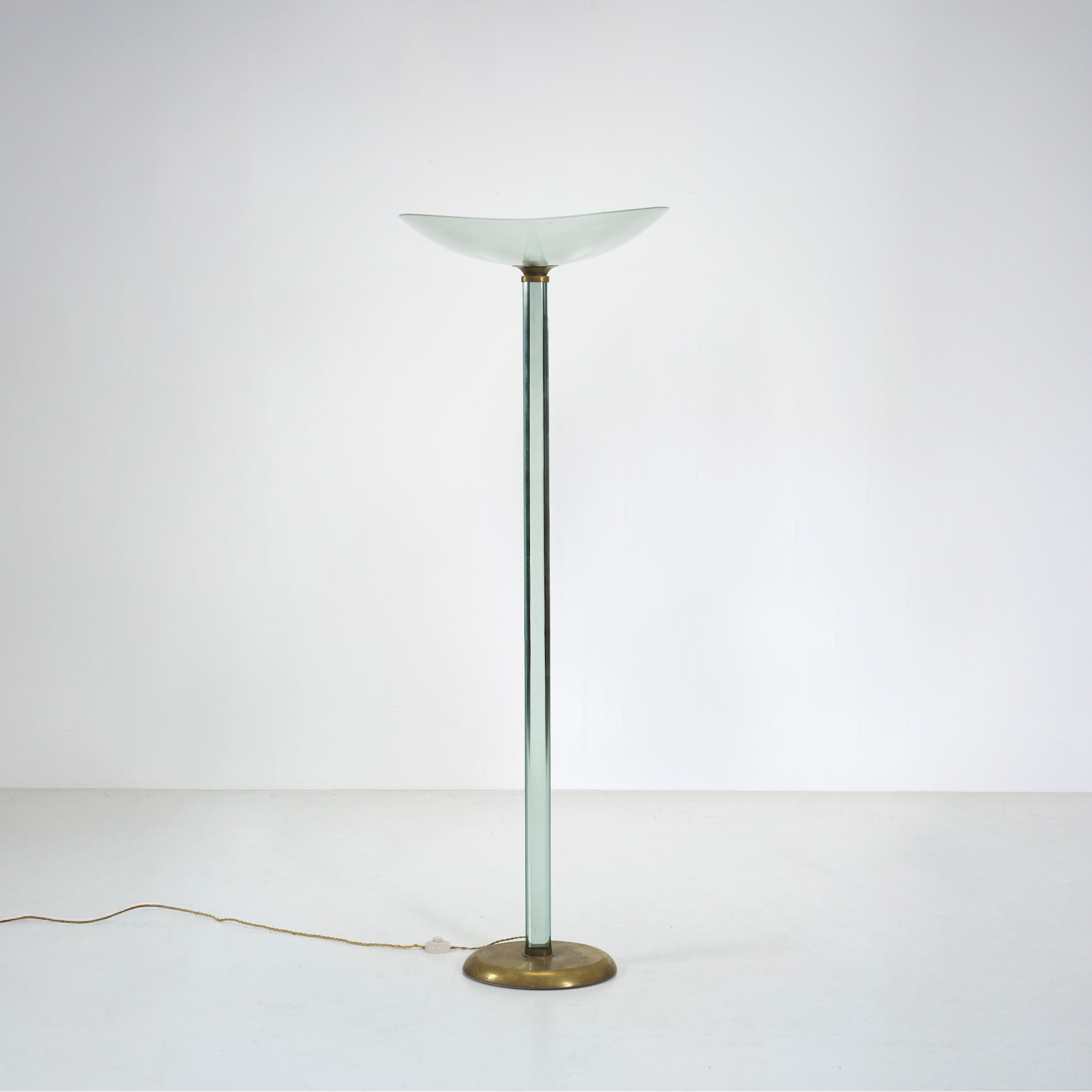 Struttura in cristallo e diffusore in cristallo satinato. Base e dettagli in ottone.