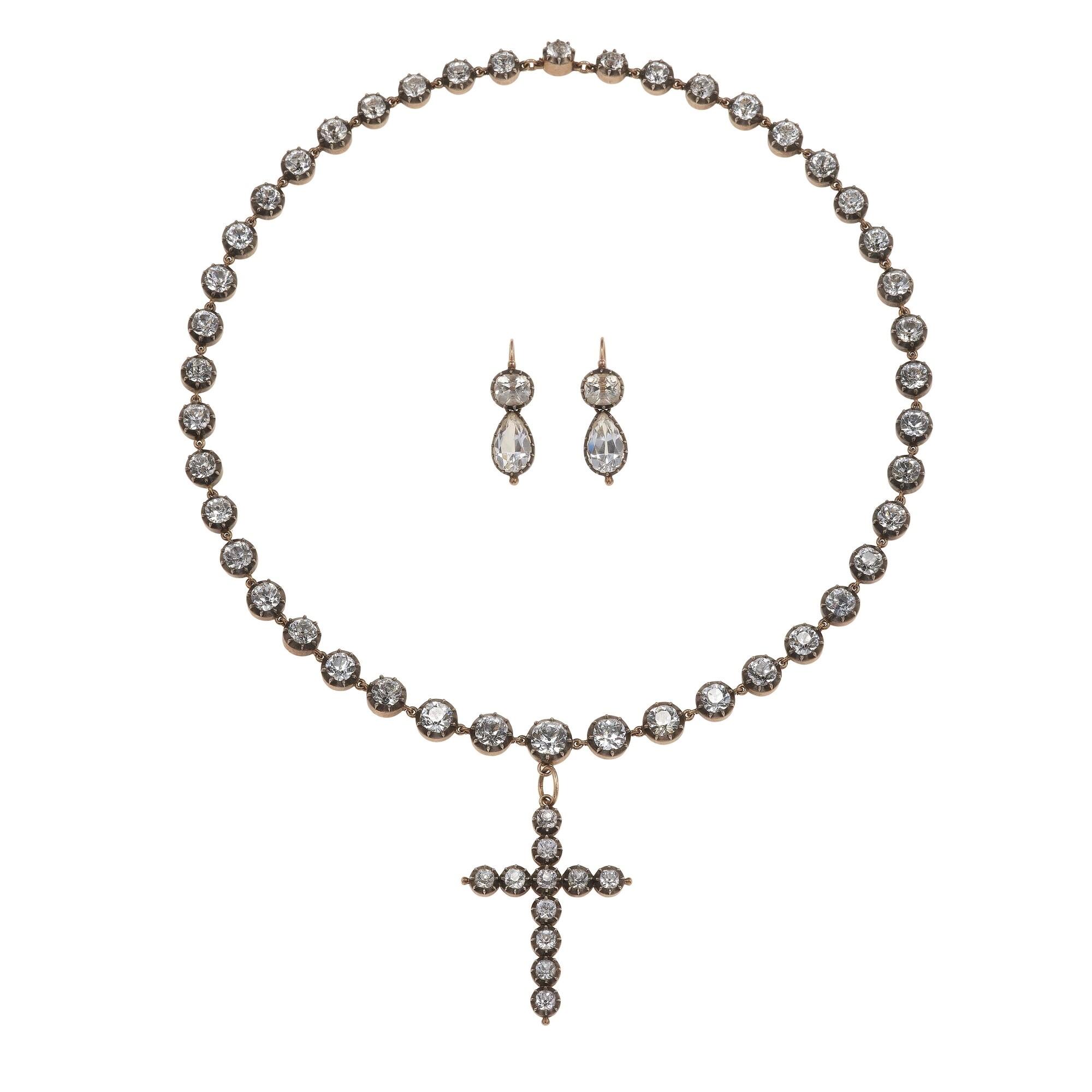 Colourless topaz, low-karat gold and silver demi-parure
