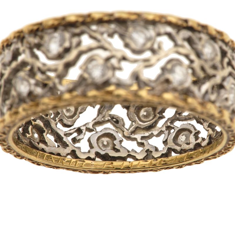 Diamond, silver and gold ring. Signed Mario Buccellati