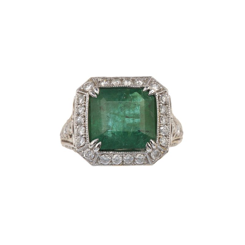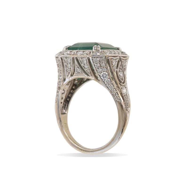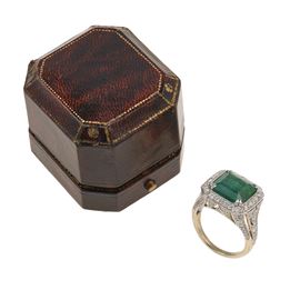 Emerald, diamond and gold ring. Gemmological Report R.A.G. Torino n. J25038mn