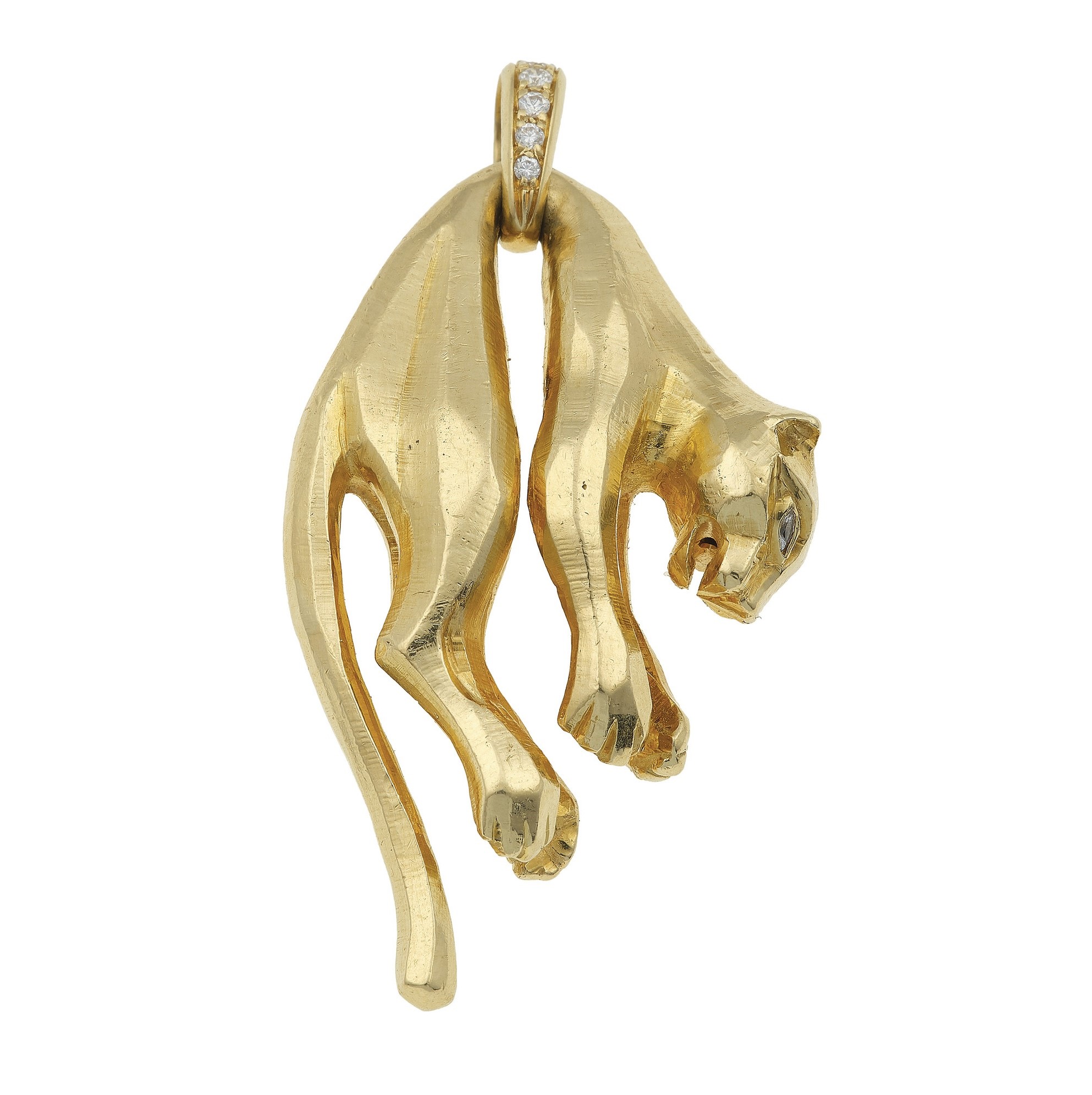 Gold e diamond "Panthère" pendent. Cartier? Partly illegible serial numbers
