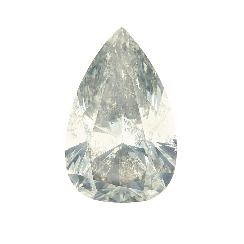 Pear-cut diamond weighing 3.05 carats, fancy gray-yellowish green, clarity I1, fluorescence UV strong blue. Gemmological Report GIA n. 5201098652