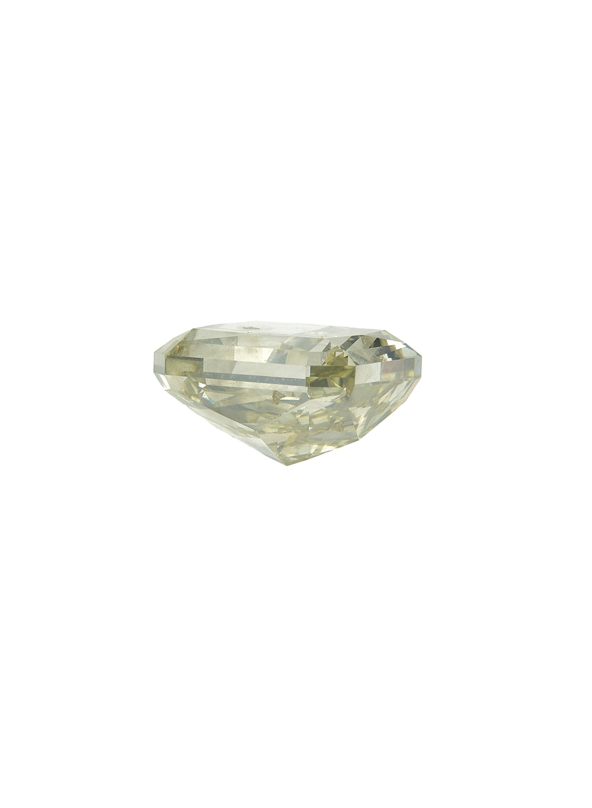 Rectangular faceted and step-cut diamond weighing 3.02 carats, fancy greenish yellow, clarity SI2, fluorescence UV slight. Gemmological Report CISGEM n. 3444/AA