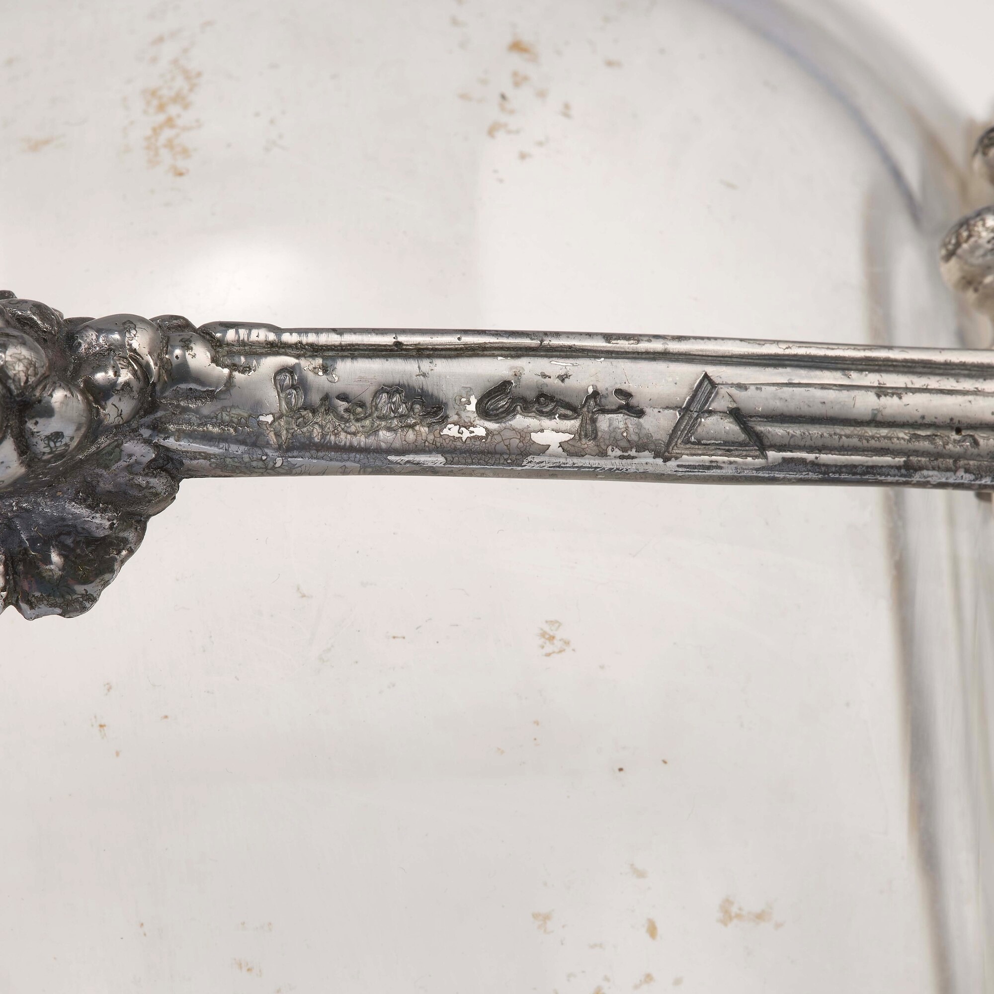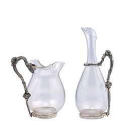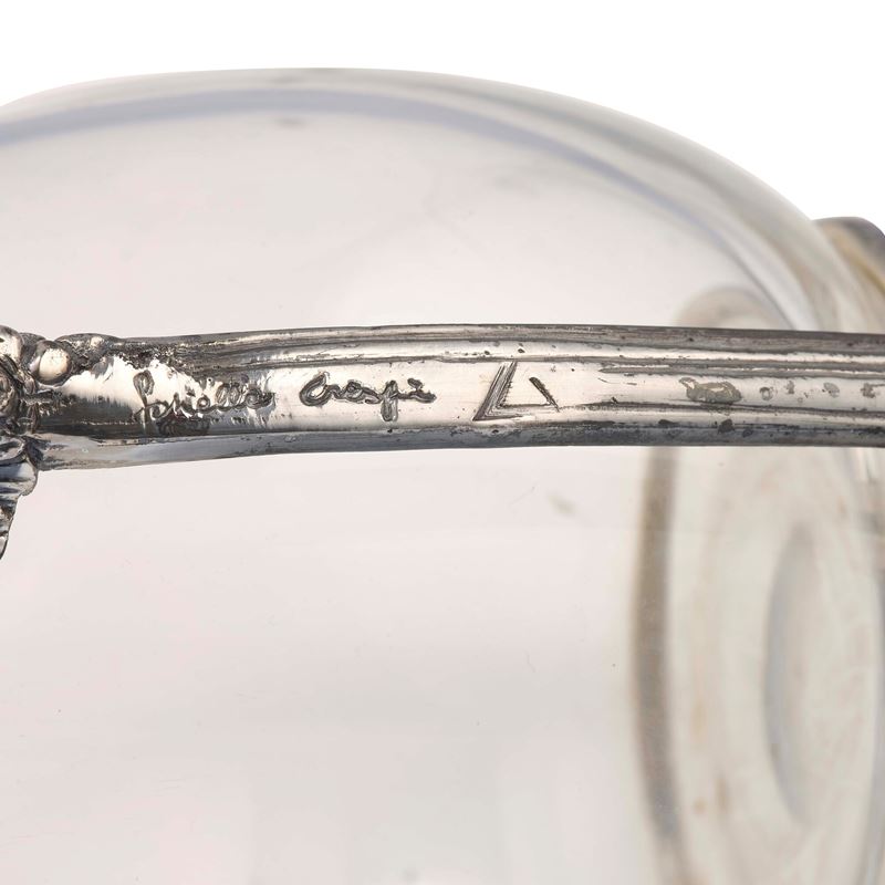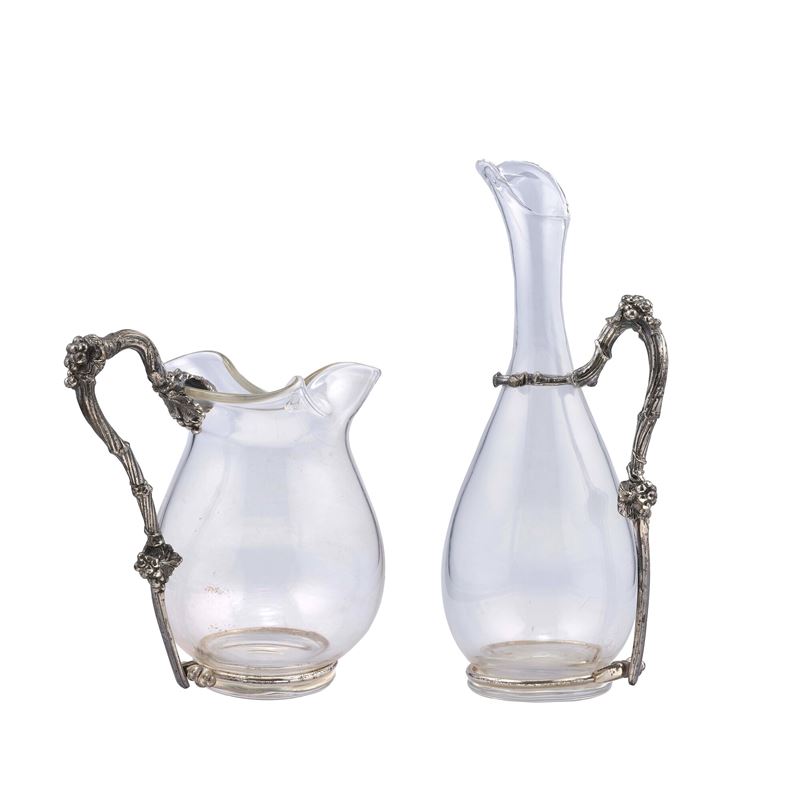 Two glass and metal hanled jugs. Signed Gabriella Crespi